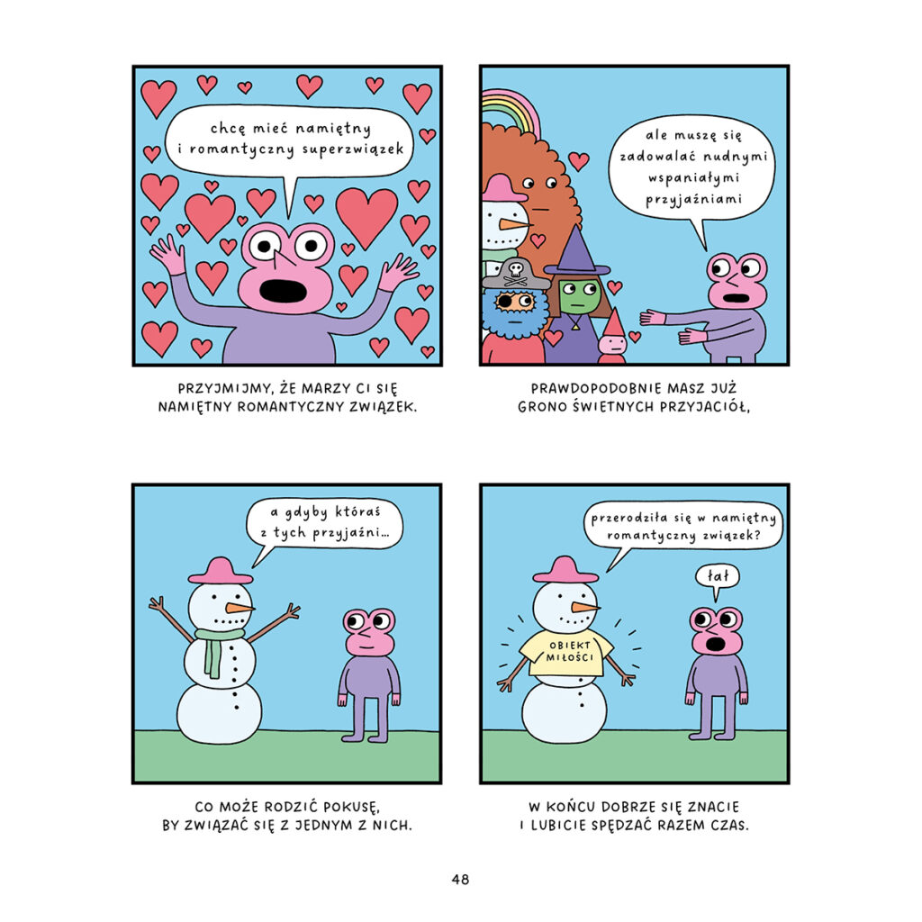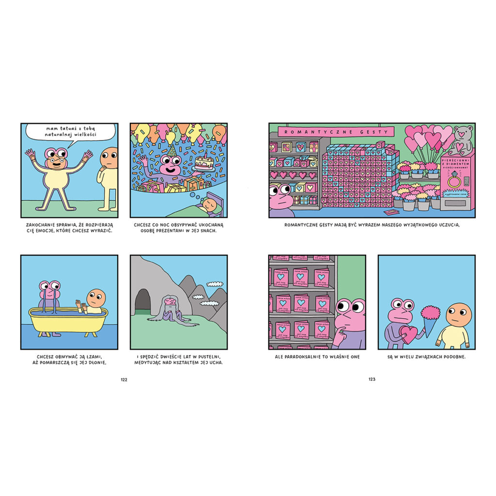 Miłość – jak ją ogarnąć? Dowcipny, pełen otwartości i ciepła komiksowy poradnik dla wszystkich, którzy wchodzą w pierwsze poważne związki. Wolny od uprzedzeń, przełamujący schematy i dodający otuchy!