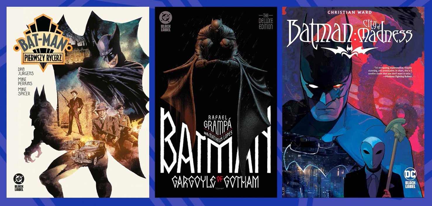 - DC BLACK LABEL – pojawią się Resurrection Man: Quantum Karma, Superman: The Kryptonite Spectrum, Bat-Man: Pierwszy Rycerz, Batman: Gargoyle of Gotham, Batman: City of Madness.
