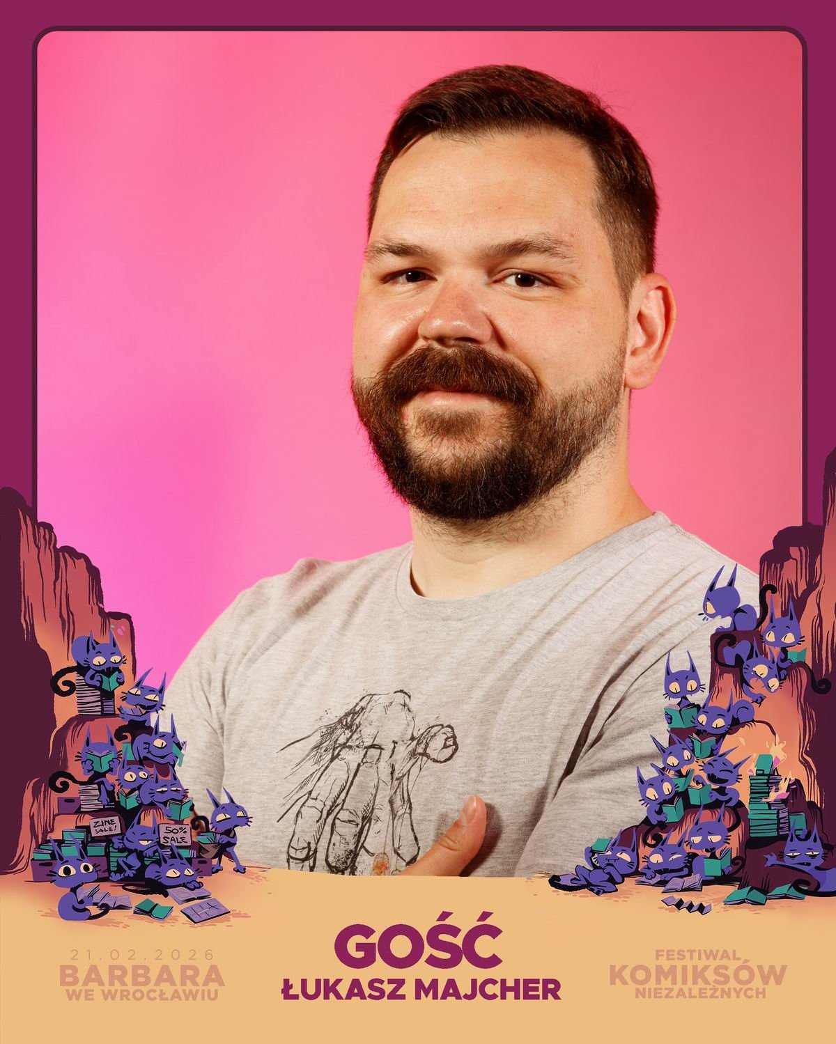 - Łukasz Majcher – twórc komiksowy mieszkający w Berlinie. Od 2023 roku prowadzi Moom Comics – niezależne, queerowe wydawnictwo, skupiające się na autorskich komiksach i powieściach graficznych. Na 2026 rok planuję premierę Totenbetter, horrorowego komiksu osadzonego w Lesie Bawarskim, który współtworzy ze swoim partnerem Stefanem Paulem.