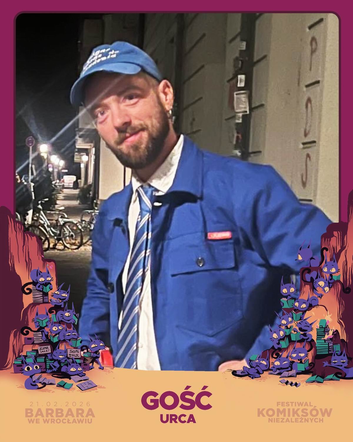 - Błażej qrjusz Kurowski, twórca komiksowy i ilustrator z Łodzi, uczestnik wystaw i festiwali artystycznych w Polsce i za granicą! Możecie go znać m.in. z serii Stachanowiec in Space (wydanej w Polsce i Czechach) oraz komiksów Jak będę duży to zostanę Hadfieldem (z Bartkiem Biedrzyckim), Cudowni (scen. Marcin Bałczewski) i S11: oddział śledczy (z Jerzym Łanuszewskim). Wydaje własnym sumptem zina VLEPKAZIN. Publikował m.in. w zinach: Warchlaki, Kolektyw, Profanum, Żar Ptak, Rocznik Fantastyczny oraz w magazynach Fenix i Pismo, a także w antologiach Silence i Comic Cookbook. Poza komiksem zajmuje się również ilustracją oraz projektami naklejek i nadruków. Czy Błażej kiedyś poleci w kosmos? Ile znaków kanji to za dużo znaków kanji? Która kombucha jest najlepsza? Wszystkie odpowiedzi na te pytania będzie próbował wyciągnąć z Błażeja podczas spotkania Dominik Szcześniak.