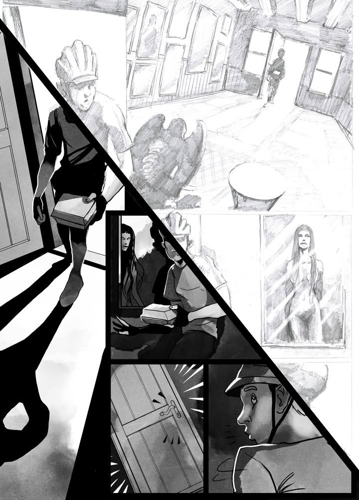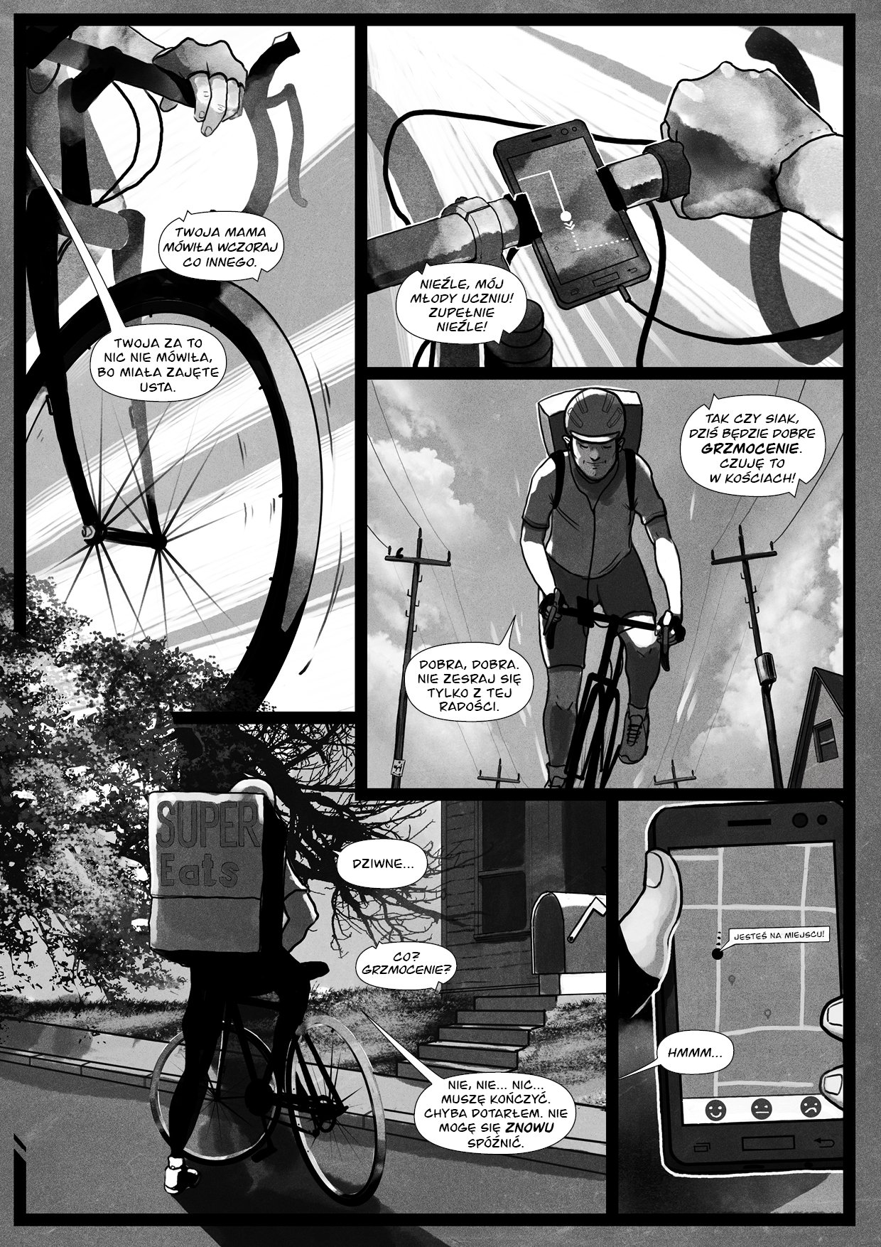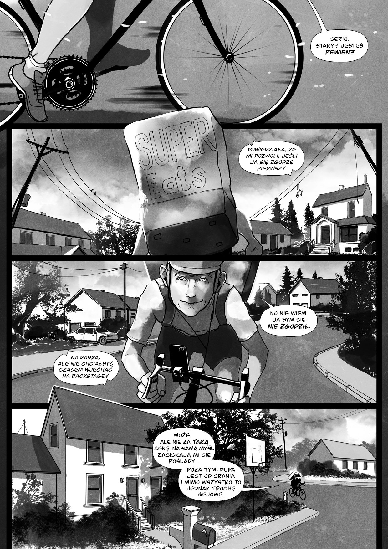 Scenariusz powstawał w okresie przedhalloweenowym, więc przystroiłem go w piórka horroru, jednocześnie wykorzystując klisze z mainstreamowych filmów dla dorosłych w postaci dostawcy jedzenia i nieco cringy dialogów. Wtedy nie publikowałem jeszcze na swoim IG takich treści, jak dziś, więc pisanie podobnych scen trochę mnie krygowało, co przełożyło się na komediowy aspekt komiksu. Za to akcję prowadziłem tak, jakbym pisał superhero. Znajdziecie więc w „Drugiej dziurce” splashe i spready typowe dla amerykańskiej szkoły.