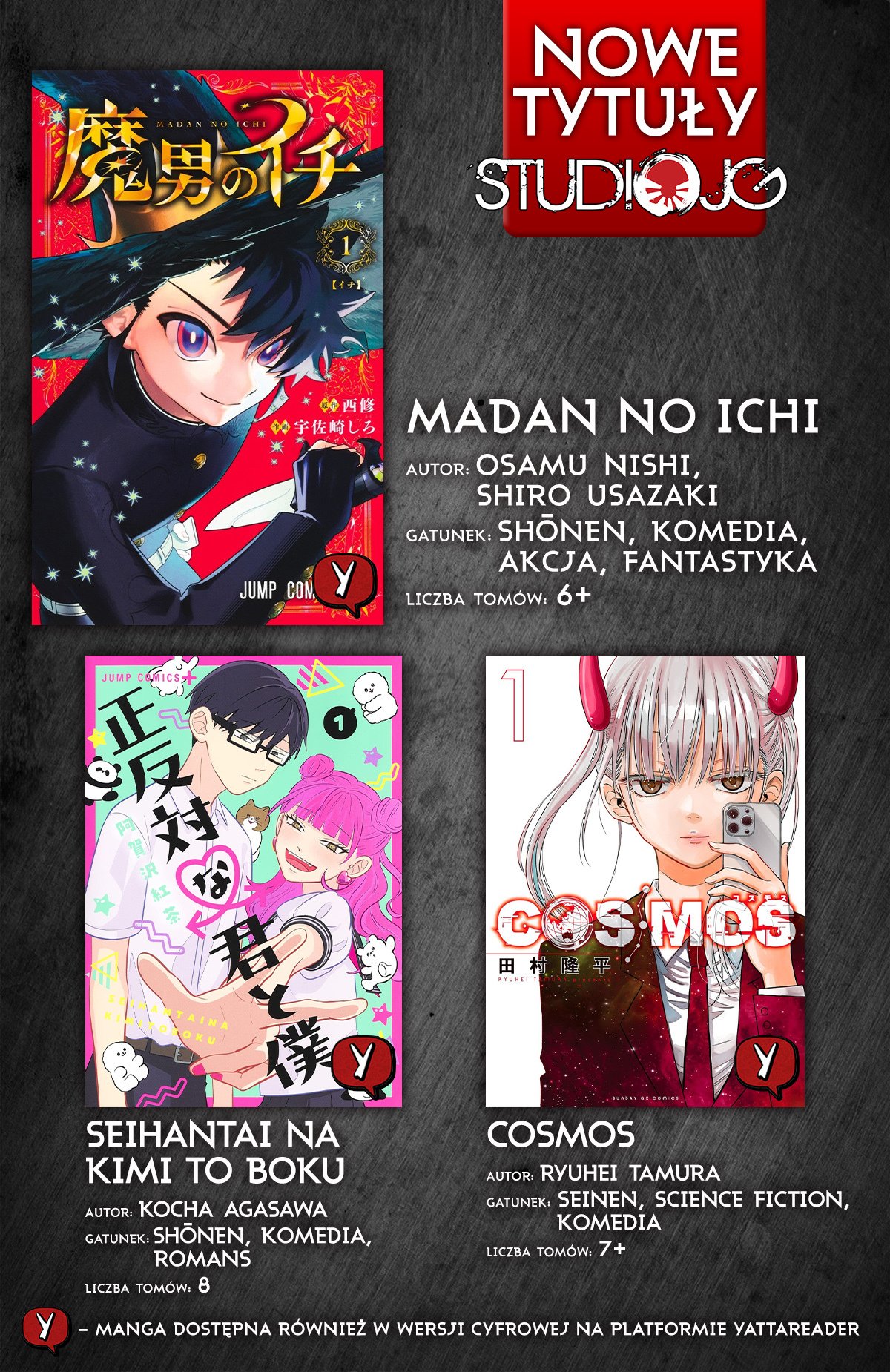 Trzeci z zapowiadanych tytułów to Cosmos, którego autorem jest Ryuhei Tamura (Beelzebub). To seinen komediowy w konwencji science fiction. Bohater jest licealistą z niezwykłym talentem — precyzyjnym rozpoznawaniem, czy ktoś kłamie. Kiedy tajemnicza dziewczyna mówi mu, że jego kolega jest poszukiwanym kosmitą, wszystko się komplikuje…