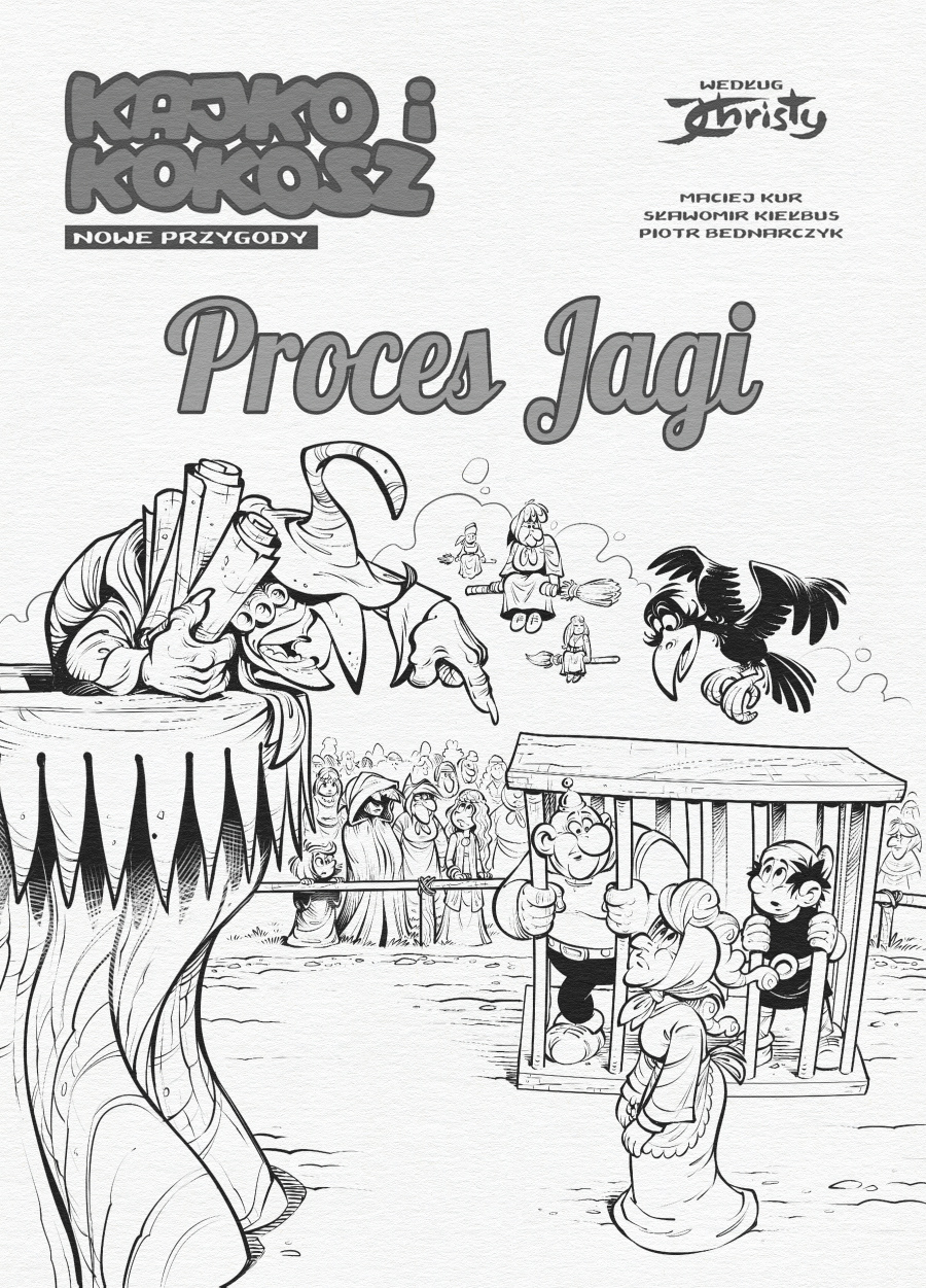 W ramach serii Kajko i Kokosz. Nowe przygody otrzymamy czwarty pełnometrażowy już album, tym razem zatytułowany Proces Jagi, tradycyjnie stworzony przez Macieja Kura (scenariusz), Sławomira Kiełbusa (rysunki) oraz Piotra Bednarczyka (kolor). Kolejne tomy z tej linii będą ukazywać się co dwa lata, na zmianę z serią antologii Kajko i Kokosz. Opowieści z Mirmiłowa. Sławomir Kiebłus udostępnił projekt roboczy okładki, do wglądu poniżej.