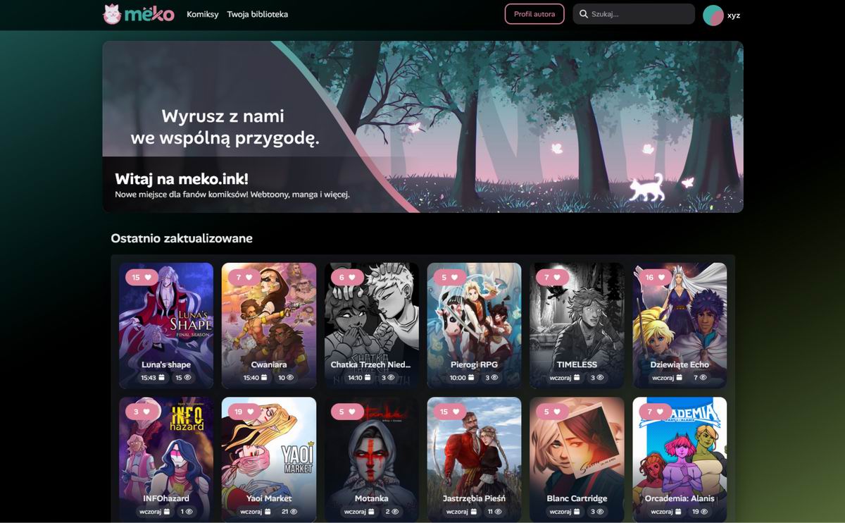 Dziś oficjalnie wystartował portal meko.ink, nowa platforma do publikowania i czytania komiksów, będąca odpowiedzią na zamknięcie webkomiksów.