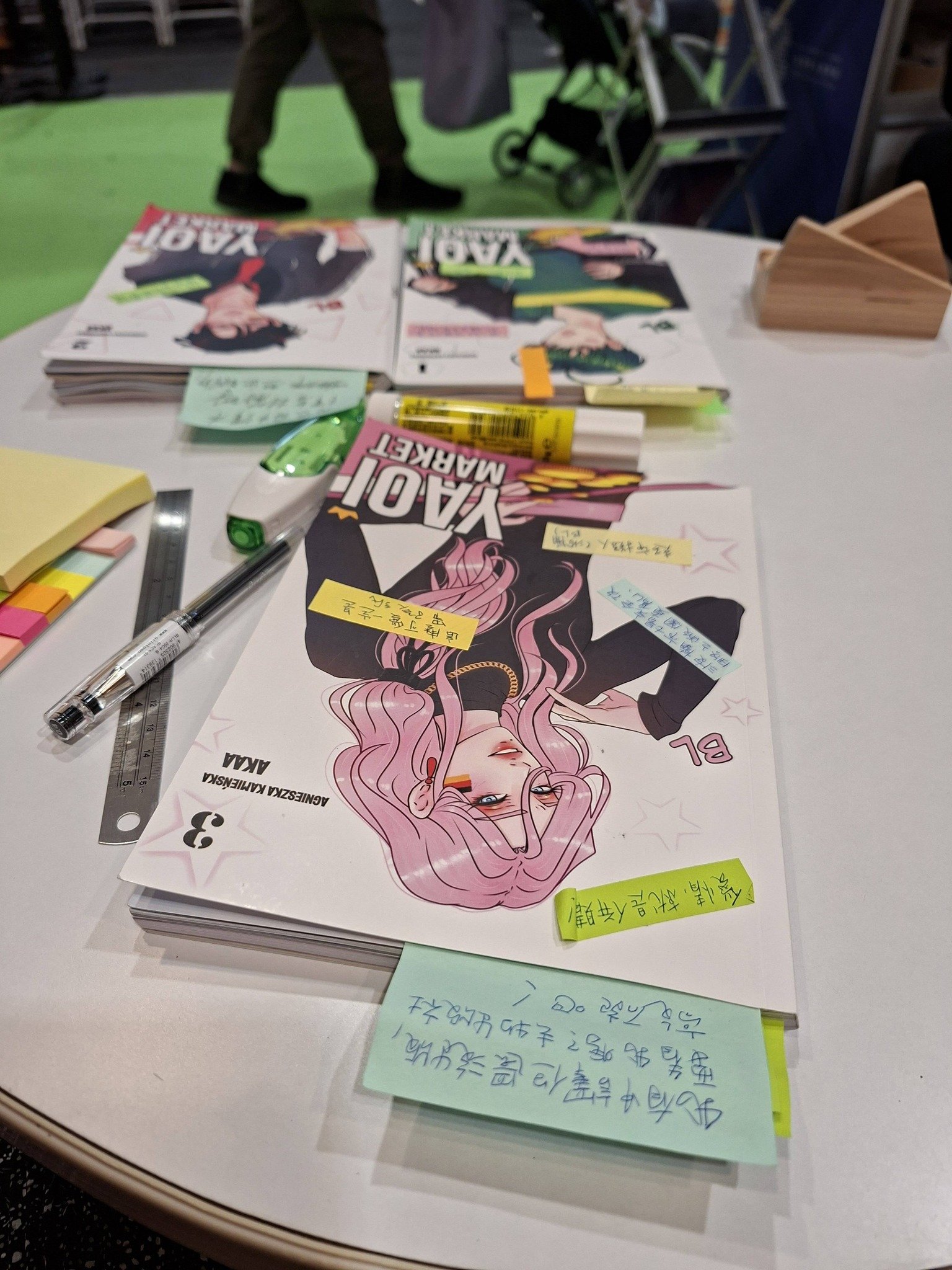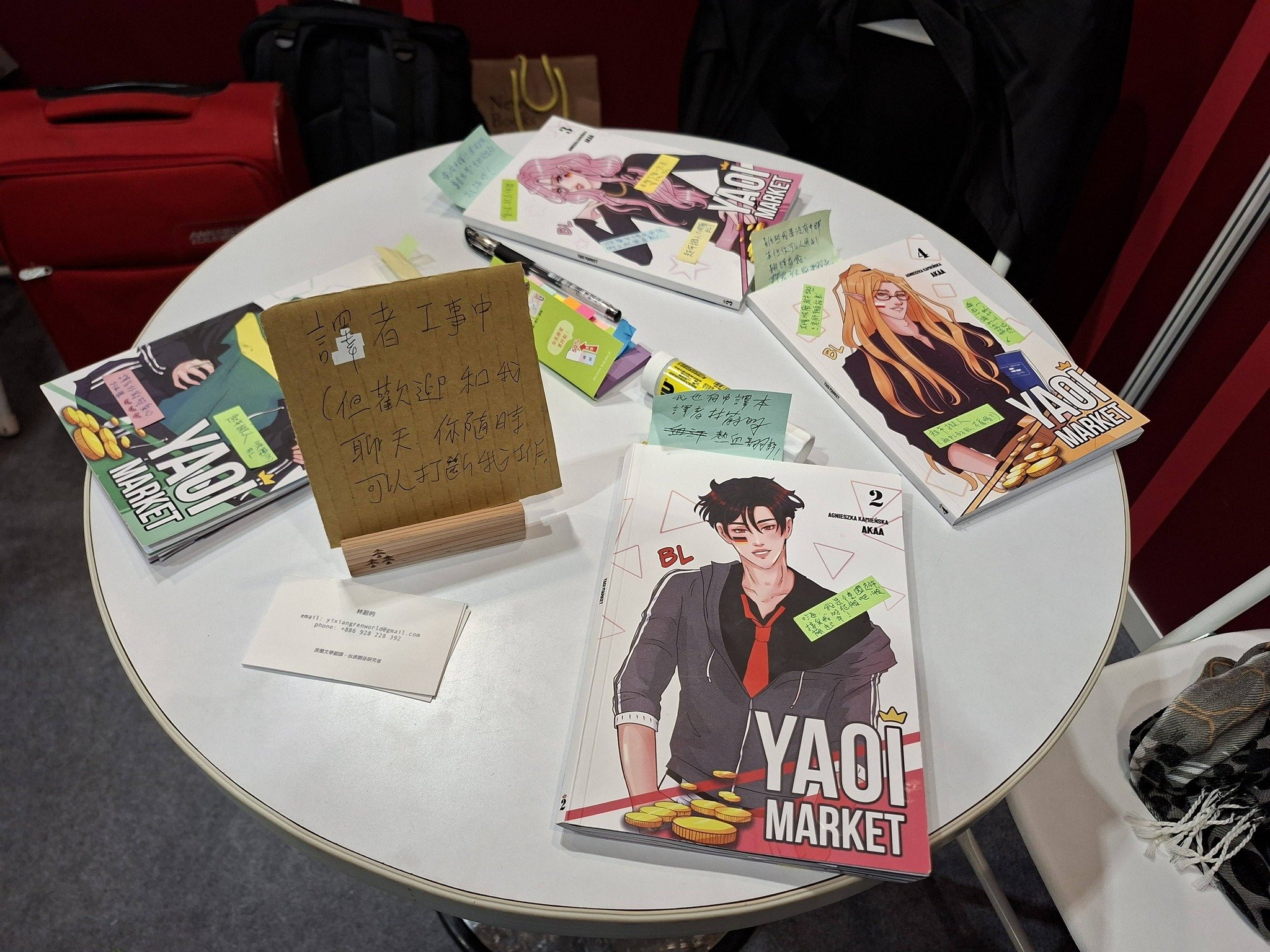 Pierwszego dnia, pierwszy tom był już gotowy, a na drugi dzień połowa drugiego. Mówiłam czytelnikom, że jeśli chcą przeczytać więcej, muszą wrócić za kilka dni, TIBE trwały sześć dni, i rzeczywiście, niektórzy wracali, niektórzy dodali mnie na FB lub zaczęli follować moje Threads, żeby dowiedzieć się, gdzie Yaoi Market będzie potem dostępny. Przyciągnęłam wielu ludzi (hahahahahaha), ponieważ pytałam prawie każdego, który przychodził na polskie stoisko: Chcecie przeczytać polskie BL?