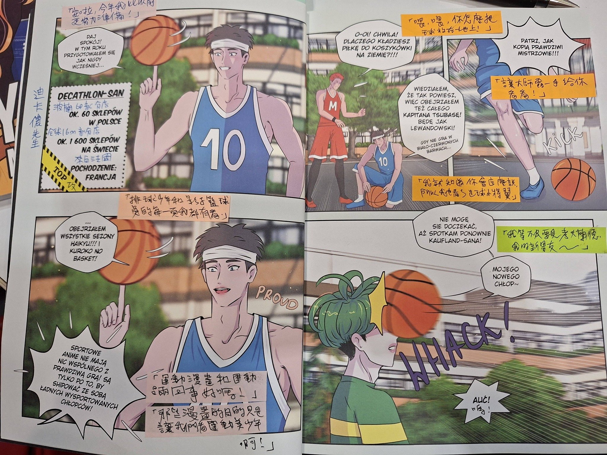 Tajwańscy czytelnicy, którzy byli w Polsce, lub są Polakami (o dziwo nie słyszeli nigdy o Yaoi Market, poznali go dopiero TU W TAJWANIE!) oczywiście rozumieją więcej żartów, na przykład jak wyglądają style TVP, TVN czy Polsat, i nie trzeba im wyjaśniać słów „wina Tuska” i „herbata Korwina”, ale do takich rzeczy daję przypisy dla Tajwańczyków. Bo jest oczywiście dużo podwójnych znaczeń i sarkazmu, których nie da się złapać od razu, komuś, kto nie zna Polski – ja mieszkałam w Polsce 11 lat, pracuję jako tłumaczka 15 lat, ale też nie łapałam wszystkiego, więc jeśli kiedyś dojdzie do oficjalnego wydania, muszę jeszcze bardziej się do tego przyłożyć..
