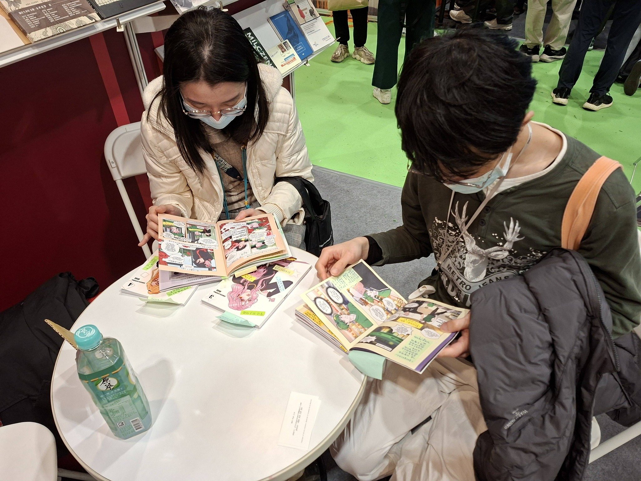 Wei-Yun Lin tłumaczyła komiks Kamieńskiej właśnie na polskim stoisku, w czasie rzeczywistym, a czytelnicy na bieżąco przychodzili go czytać i zostawiać feedback.