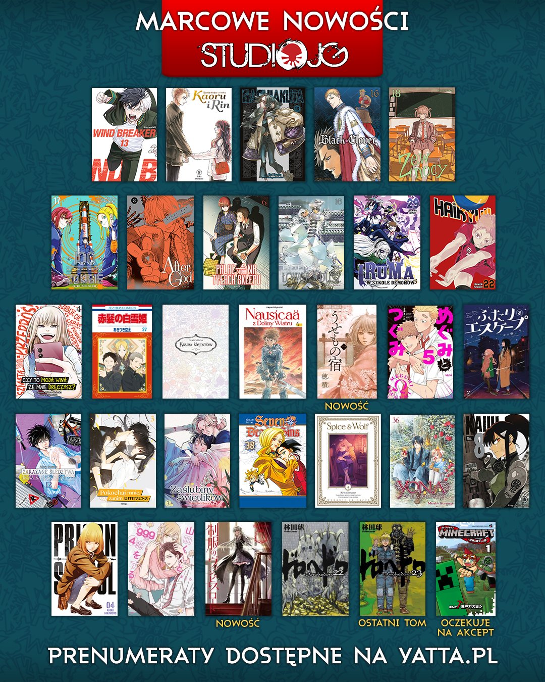 Wydawnictwo Studio JG zaktualizowało swój plan wydawniczy na marzec bieżącego roku. W sprzedaży pojawi się trzydzieści tytułów.