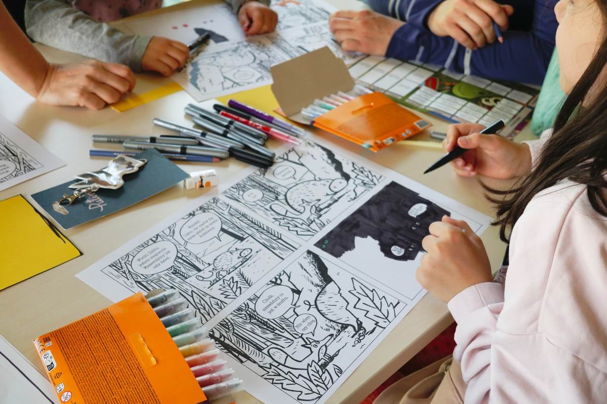 W bibliotece prowadzone są również warsztaty komiksowe dla dzieci i młodzieży, realizowane przez pracowników Arteteki. Podczas zajęć uczestnicy poznają podstawy tworzenia komiksu, dowiadują się, czym jest ta forma sztuki oraz jakie tytuły znajdują się w naszych zbiorach. Młode osoby mają także możliwość stworzenia własnych komiksów, korzystając z tabletów graficznych i specjalistycznych aplikacji.