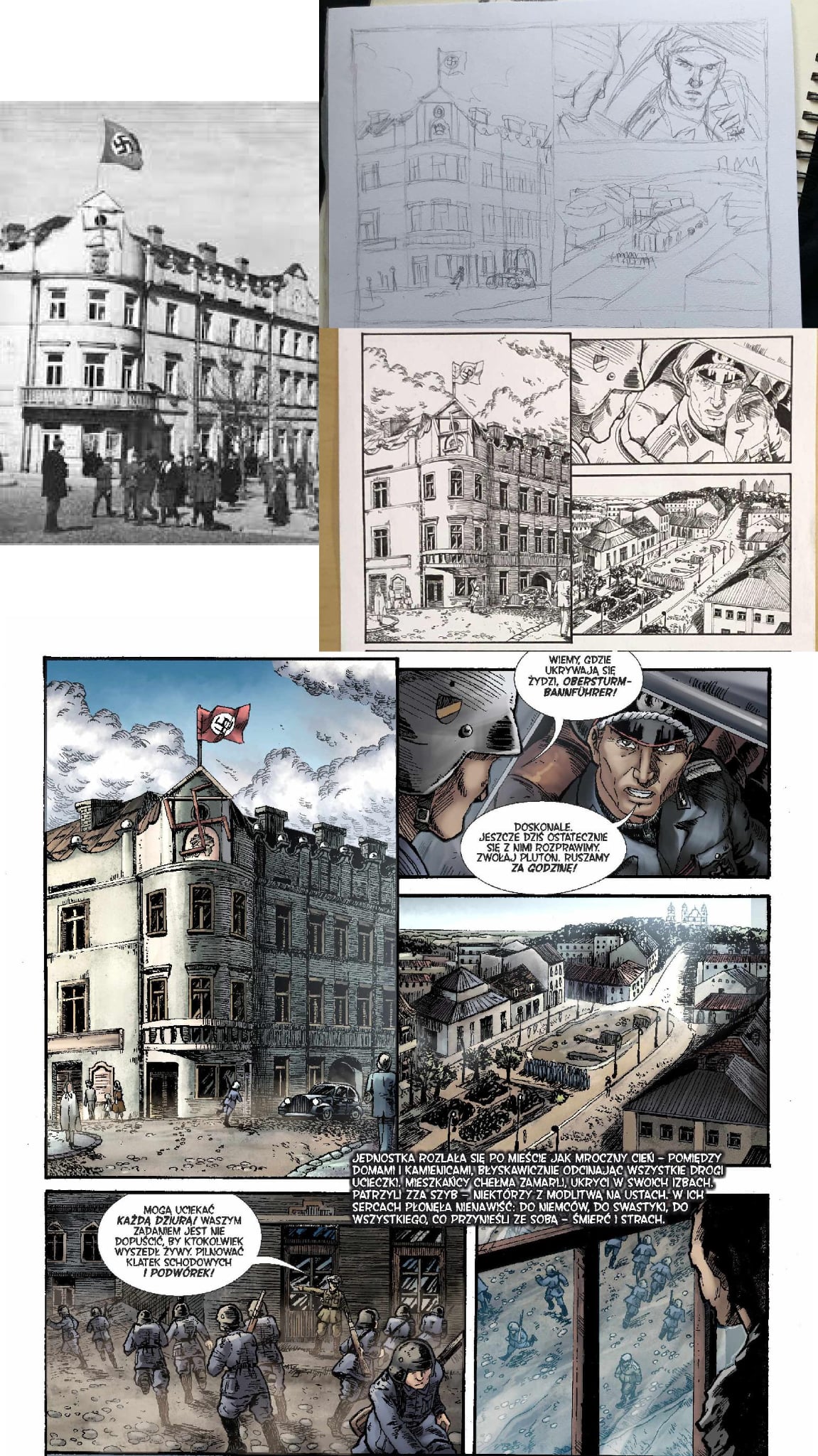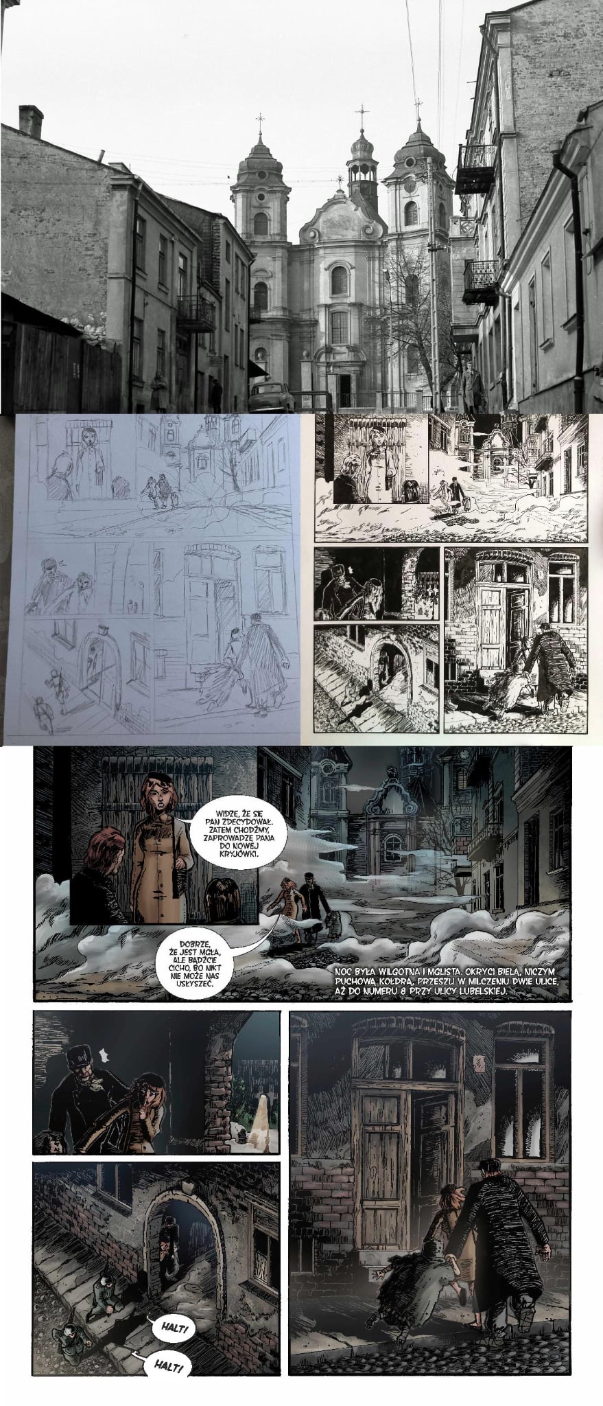 Za warstwę literacką tego rozdziału— tak jak podczas całej pierwszej części — odpowiada Anna Mazurkiewicz. To ona stworzyła opowiadanie, z którego później złożyłem szczegółowy scenariusz komiksowy. Nad zgodnością historyczną czuwał Zbigniew Lubaszewski. Każdy budynek, ulica czy brama pojawiająca się w kadrze była oparta na zdjęciach archiwalnych. Chcieliśmy, by ten rozdział nie tylko opowiadał historię, ale był również dokumentem pamięci miasta.