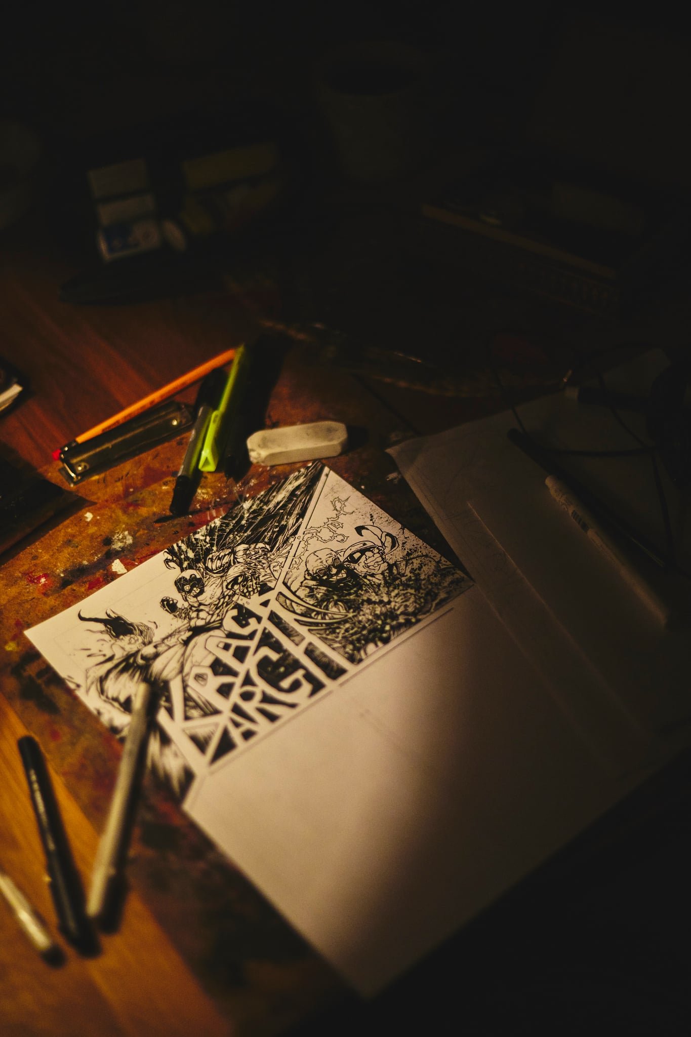 Jeżeli chodzi o sam proces twórczy, to – identycznie jak w przypadku pierwszego WRE – najpierw są szkice w ołówku, potem nakładanie tuszu, później skan, druk (żeby mieć backup) i nakładanie kolorów flamastrami, farbami, cienkopisami i czymkolwiek, co sprawi, że plansza lub kadr staną się jeszcze lepsze.