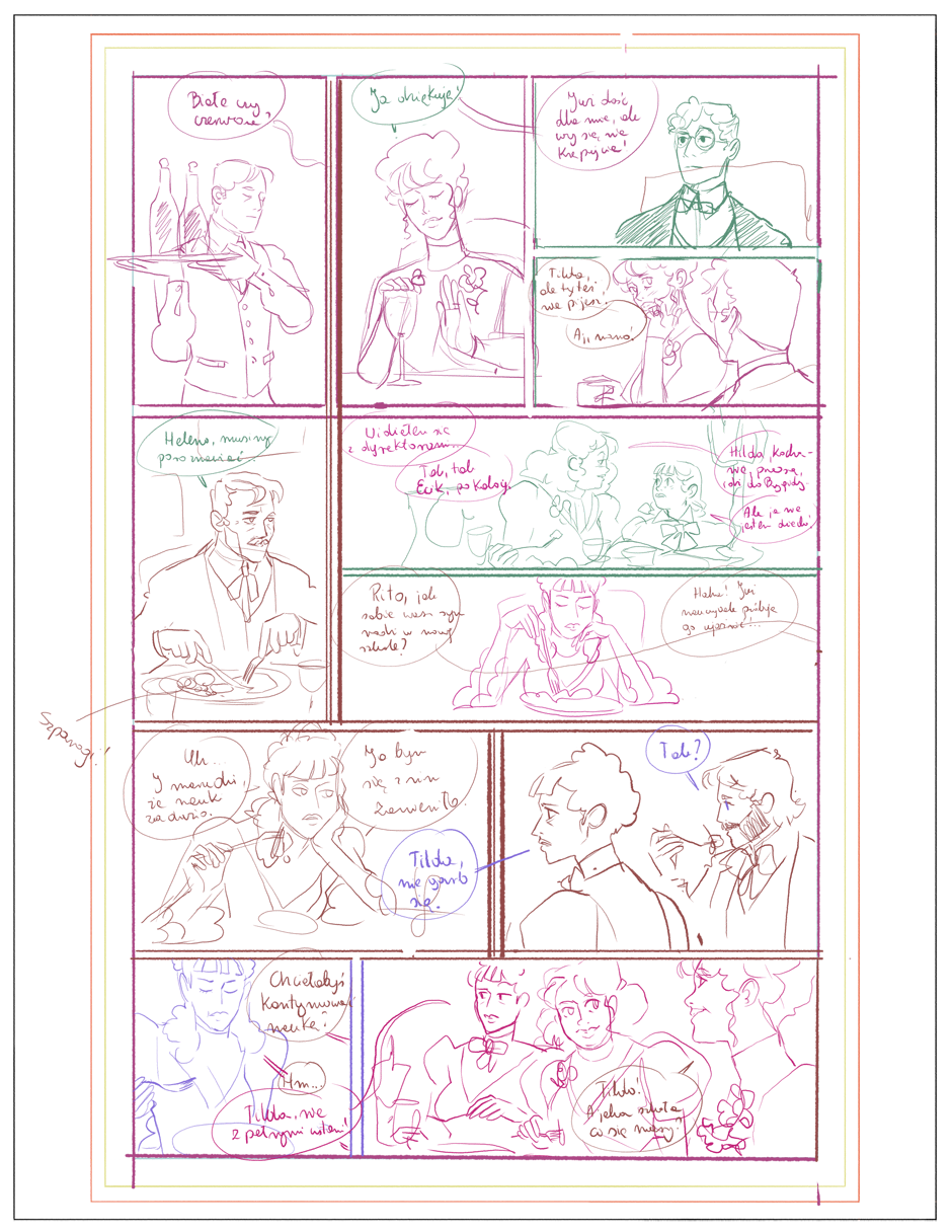 Sama jestem zaskoczona w jaką stronę poszła ta historia. W mojej pracy nad komiksami nigdy nie piszę scenariusza, ograniczam się tylko do notatnika, w którym spisuje swoje luźne pomysły i punkty fabularne, które chcę zamieścić w historii.
