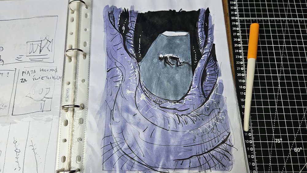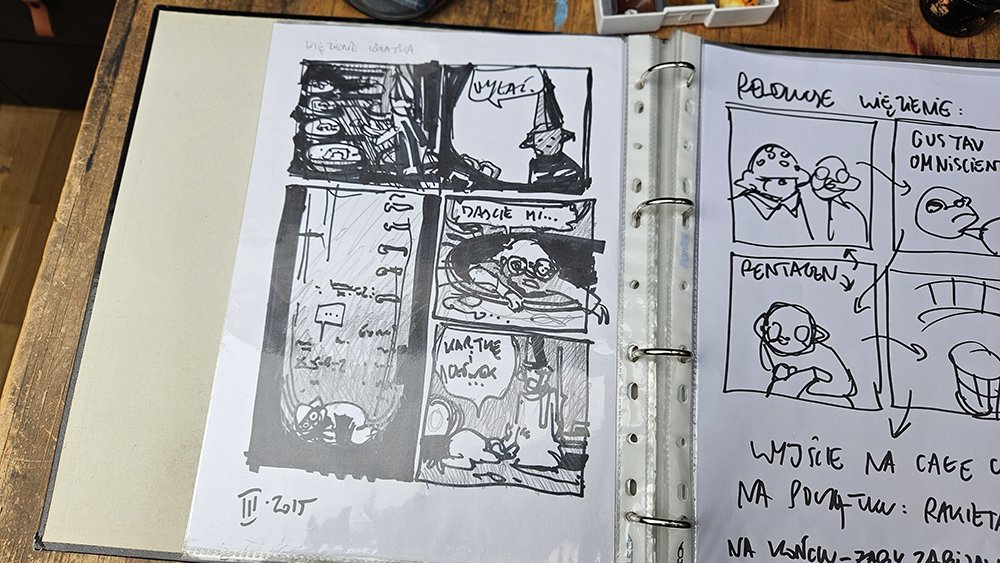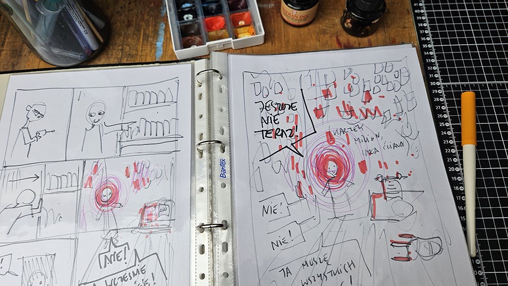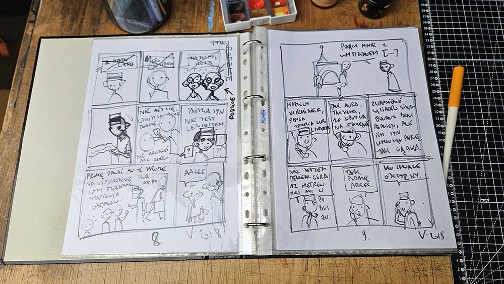Mój proces pisania komiksów jest dosyć chaotyczny, głównie dlatego, że trwa dosłownie latami. Jednak jak pojawia się klamra zamykająca dany album, wtedy przychodzi czas, żeby to wszystko co dzieje się pomiędzy otwarciem i zamknięciem poukładać w odpowiedniej kolejności.