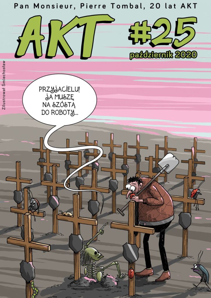 Oczywiście nie samymi urodzinami AKT żyje. Na uwagę jak zawsze zasługują Listy z działu Wyjęte z akt, które zebrał Michał Gasewicz, czy recenzje przygotowane przez Szymona Gumienika. W numerze zamieściliśmy także komiksy z takimi bohaterami jak Grabarz Piotra Wojciechowskiego, Garron z Oderży Karola Jesiołkiewicza, Nes Zvyrke, szczur Teodor Krzysztofa Churskiego, babcia Irena Krzyśka Otorowskiego, melon od melona, czy nowe Beskid Boty, których autorem jest Paweł Przygoda. Ponadto w AKT #25 znalazły się nowe komiksy od Anety Papierowskiej i Jarosława Wojtasińskiego, a i tak to jeszcze nie wszystko 🙂