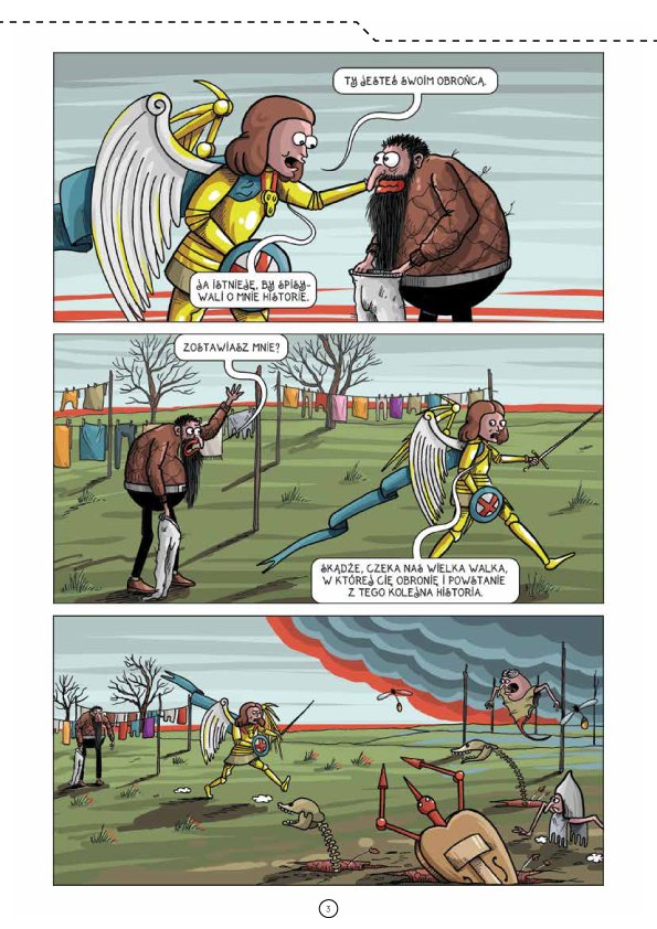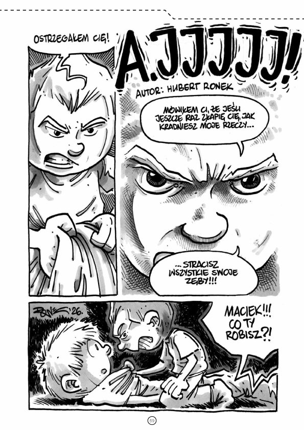 Z komiksów oczywiście to nie wszystko, gdyż znajdziecie jeszcze wiele krótszych form, które w większości spaja pojawiająca się tu i ówdzie liczba 40. Publicystyka to oprócz wspomnianego wywiadu z Hubertem Ronkiem, podsumowanie wrześniowej imprezy Salon Komiksu w Gorlicach, organizowanej przez naszego AKTowego kolegę – Grzegorza Wawrzyńczaka. W AKT #40 znajdziecie również tekst Łukasza Chmielewskiego o komiksowym RoboCopie w wykonaniu Franka Millera, artykuł Dawida Śmigielskiego, którym przypomina o pewnym porno komiksie z wydawnictwa Mandragora, a Michał Siromski przytacza najciekawsze fragmenty z rozmów prowadzonych z Billem Sienkiewiczem podczas jego pobytu na zeszłorocznym MFKiG w Łodzi.