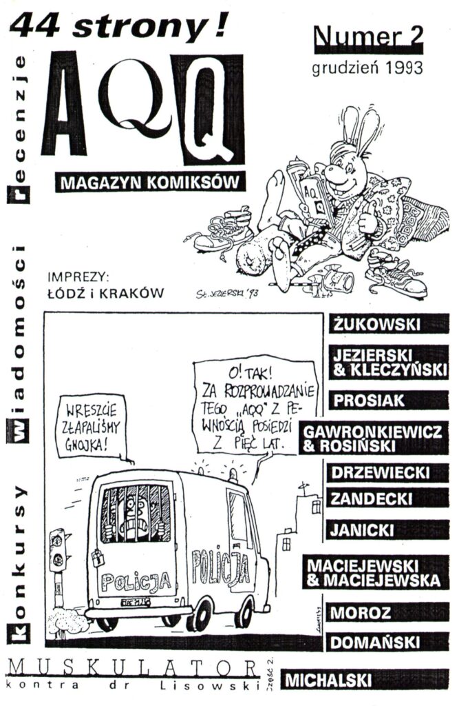 Drugi numer na 44 stronach prezentuje komiksy takich twórców jak Krzysztof Gawronkiewicz i Krystian Rosiński (tak, to syn siostry Grzegorza Rosińskiego) – w ich wykonaniu rewelacyjny Achtung Zelig!, Jezierskiego i Kleczyńskiego Kic Przystojniak, Żukowskiego, Zandeckiego, Drzewieckiego (Good morning USA), Janickiego, Maciejewskich, Prosiaka (Azyl), Moroza, drugi odcinek Muskulatora kontra dr Lisowski autorstwa Jacka Michalskiego. Dodatkowo tekst o Fistaszkach Schulza, relacje z imprez w Łodzi i Krakowie, krótkie informacje z polskiego komiksowego podwórka, recenzje i informacje o konkursach rysunkowych.