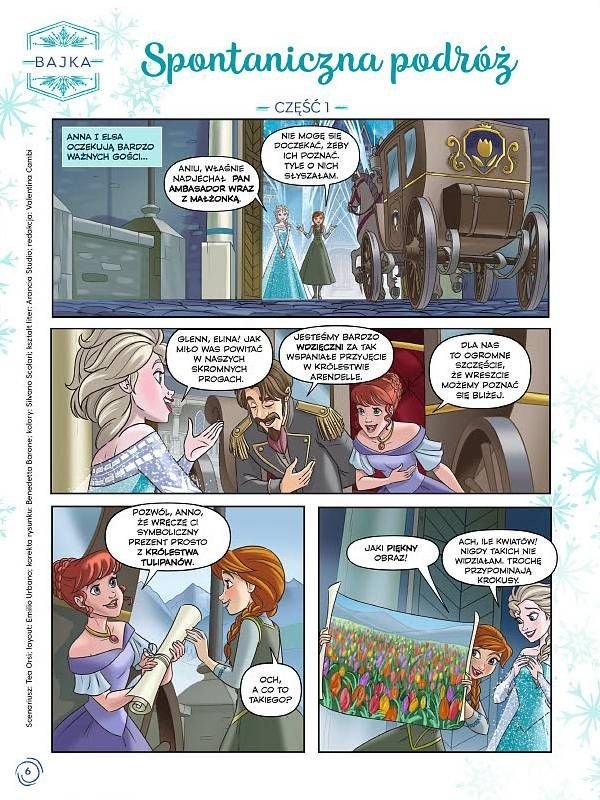 W magazynie czytelniczki mogą dołączyć do bohaterów poznanych w filmie i śledzić ich zupełnie nowe przygody. Nie zabraknie uroczego bałwanka Olafa, pomocnego Kristoffa i przezabawnego renifera Svena. Poprowadzą oni czytelników przez historie komiksowe umieszczone na stronach pisma, zagadki i kolorowanki.