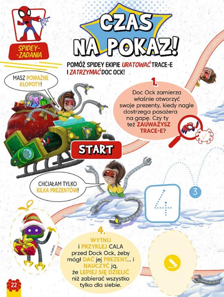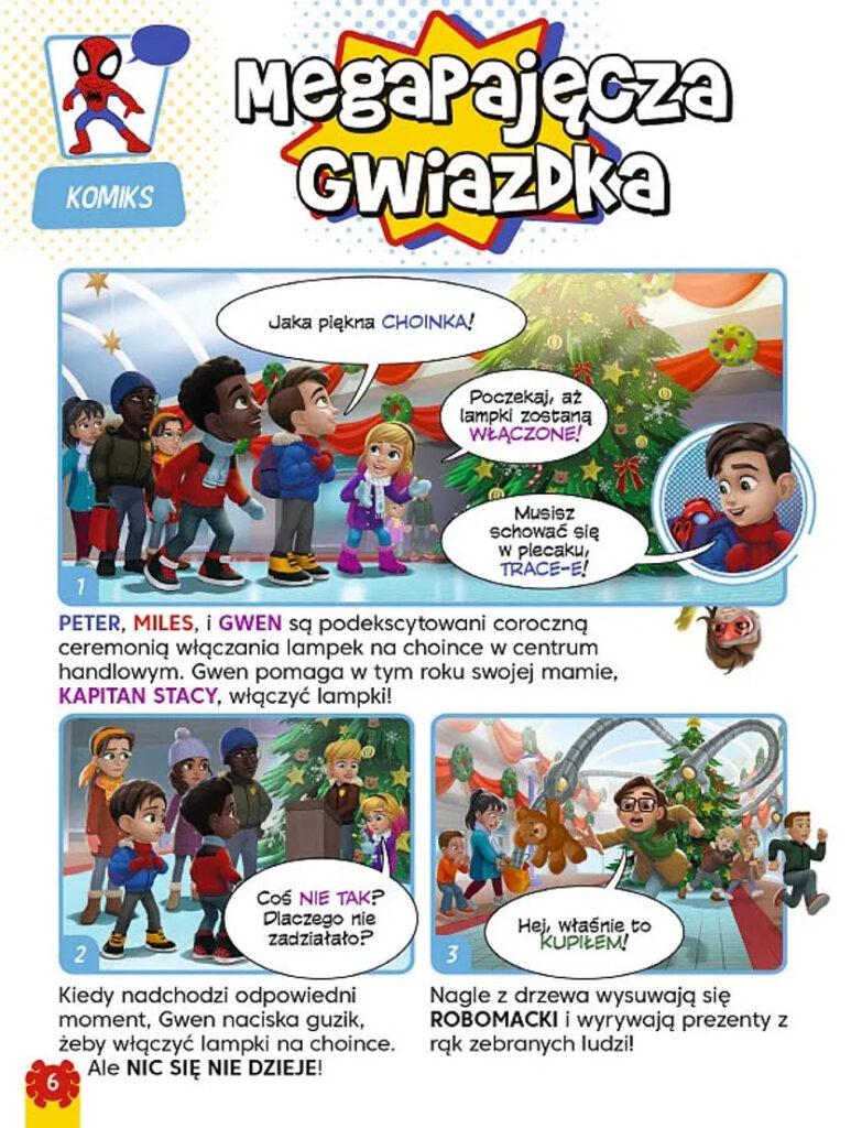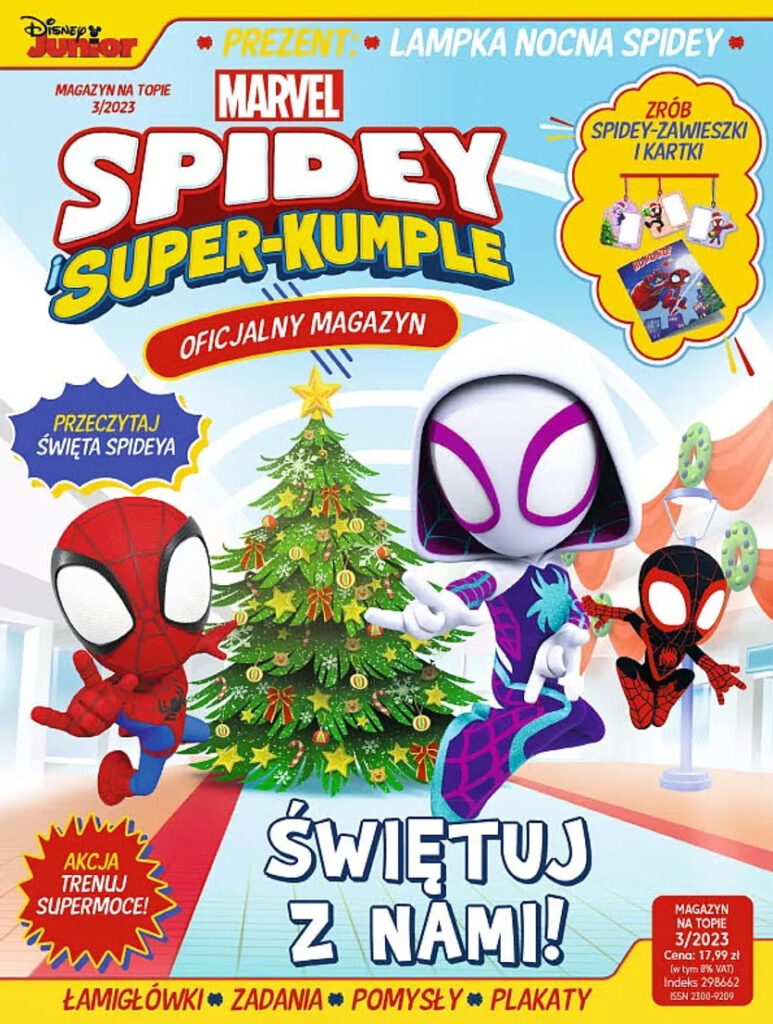 Wydanie Specjalne magazynu „Spidey i Super-Kumple” w świątecznym klimacie! Zapal wyjątkową lampkę Spideya, dodaną do magazynu w prezencie, weź magazyn pod kocyk i wyrusz na nocną przygodę z superbohaterami! „Spidey i Super Kumple” to pierwszy w historii serial animowany z uniwersum Marvela kierowany do dzieci z konkretnej grupy wiekowej – do superdzielnych przedszkolaków! Z każdej szalonej przygody bohaterów płynie ważna lekcja o istocie przyjaźni. Na przykładzie Spidey’a i jego kumpli, dzieci mogą nauczyć się o wzajemnym szacunku, akceptacji odmienności oraz pracy zespołowej.