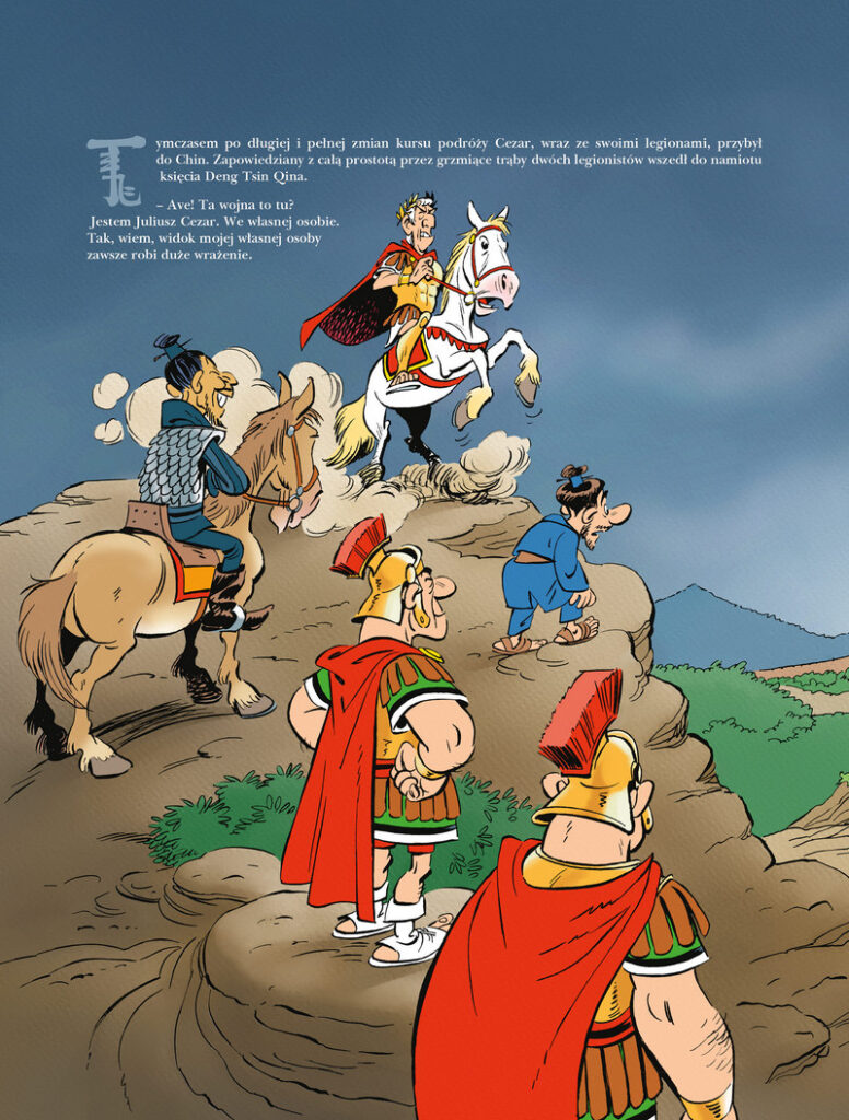 Jest 50 rok p.n.e. Chiny. Zdradziecki książę Deng Tsin Qin doprowadza do zamachu stanu, a cesarzowa zostaje uwięziona. Księżniczka Fu Yi, jedyna córka cesarzowej, ucieka z kraju i udaje się do małej galijskiej wioski, aby prosić dzielnych wojowników Asteriksa i Obeliksa o pomoc w uwolnieniu swojej matki. Okazuje się bowiem, że o ich nadludzkiej sile mówi się nawet w Szanghaju! Dwaj przyjaciele bez chwili wahania zgadzają się i wszyscy wyruszają w długą, pełną przygód podróż do Chin. W tym samym czasie Cezar, spragniony nowych podbojów, wraz ze swoją armią również zmierza w kierunku imperium smoka… Będzie się działo!