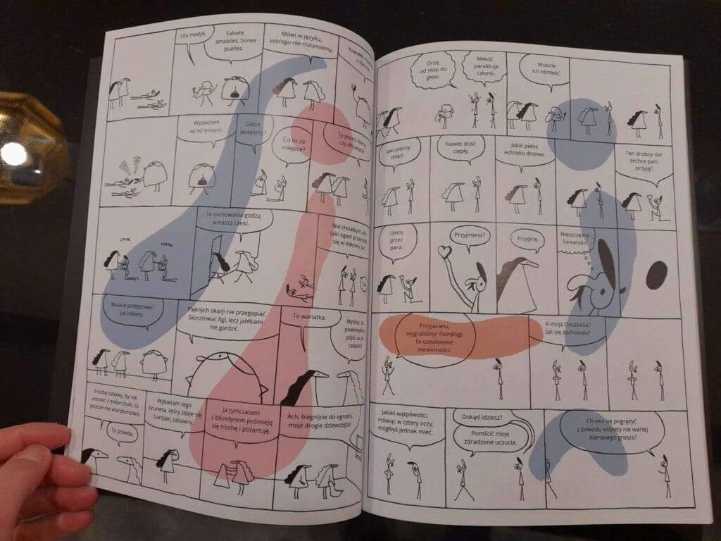 Od lat chciałem zrobić komiksową adaptację kiepskiej literatury. Używając tylko tego, co faktycznie zostało napisane, za pomocą skrótów, rytmu, zestawień, akcentowania i samego (moim zdaniem dość wiernego) rysunku zrobić paszkwil paszkwilu. No i w końcu zrobiłem i setnie się przy tym bawiłem. – Jacek Świdziński