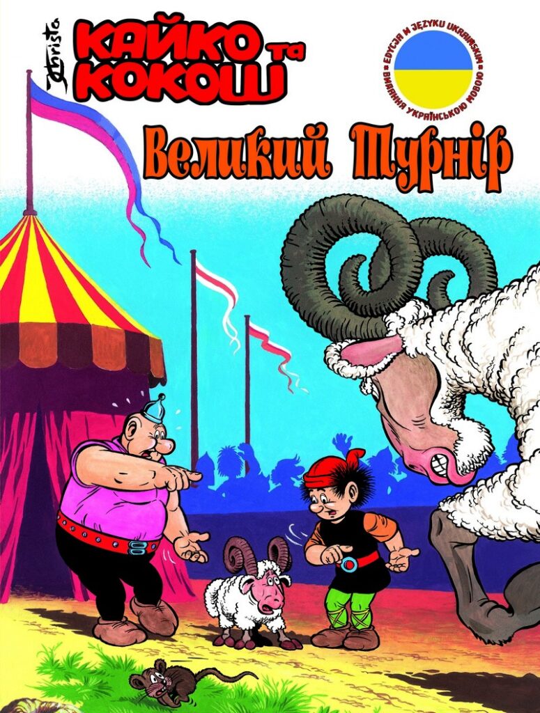 Кайко та Кокош – Великий турнір jest specjalną edycją komiksu Janusza Christy (1934–2008) Kajko i Kokosz – Wielki turniej przetłumaczonego na język ukraiński. Cykl opowiada o dwóch wojach – dzielnym i rozważnym Kajku oraz żarłocznym i samolubnym Kokoszu, którzy bronią Mirmiłowa przed atakami niecnych Zbójcerzy pod wodzą Hegemona i przeżywają masę zabawnych przygód. Komiks powstawał w latach 70. i 80. XX wieku i był jedną z wizytówek czasopisma młodzieżowego „Świat Młodych”.