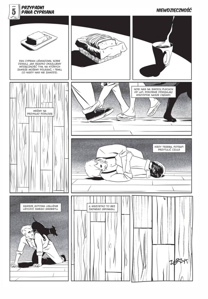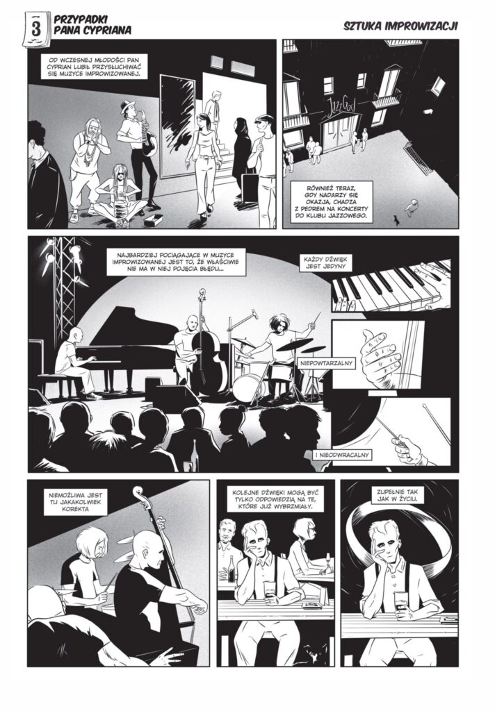 Niewątpliwie jest to utwór oryginalny, będący zaproszeniem do dialogu lub refleksji nad własnym życiem, a przy tym udowadniający, że forma opowieści graficznej nie musi być infantylna i może z powodzeniem obyć się bez epatowania czy to dosadnym humorem, czy brutalnymi efektami. Scenariusz Tomasza Chlewińskiego jest mądry – proponuje pełne pogody ducha spojrzenie na naszą codzienną egzystencję i zawiera spory ładunek niebagatelnych przemyśleń. Rafał Trejnis jest zaś uzdolnionym rysownikiem, sięgającym po niebanalne rozwiązania graficzne, ale dbającym o estetykę i czytelność rysunkowego przekazu. Komiksów takich powstaje w Polsce zdecydowanie mało (powiedziałbym, że za mało), rzadko też zdarza się, by pojawiały się u nas przedruki utworów zagranicznych, utrzymanych w podobnej poetyce i podejmujących taką tematykę. – prof. Jerzy Szyłak