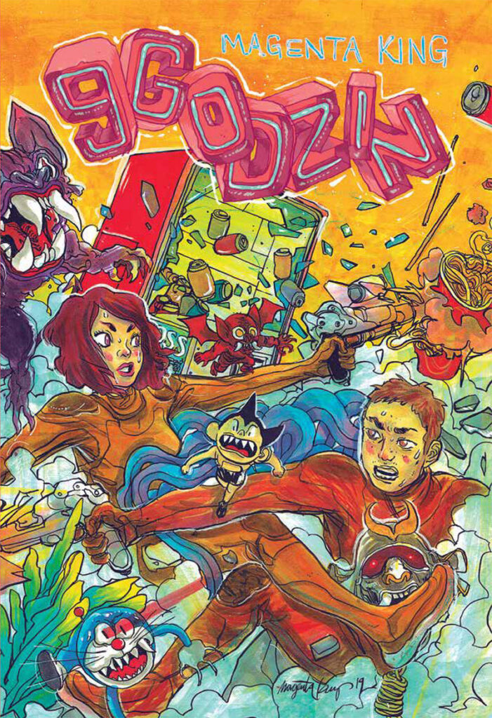 Magenta King, z niezwykłą brawurą narysował “9 Godzin”. Dzięki spektakularnej formie na każdej karcie komiksu dzieje się naprawdę wiele. A każdy kadr daje powód do śledzenia kunsztu rysownika.