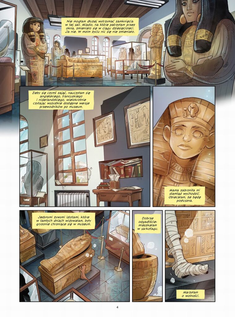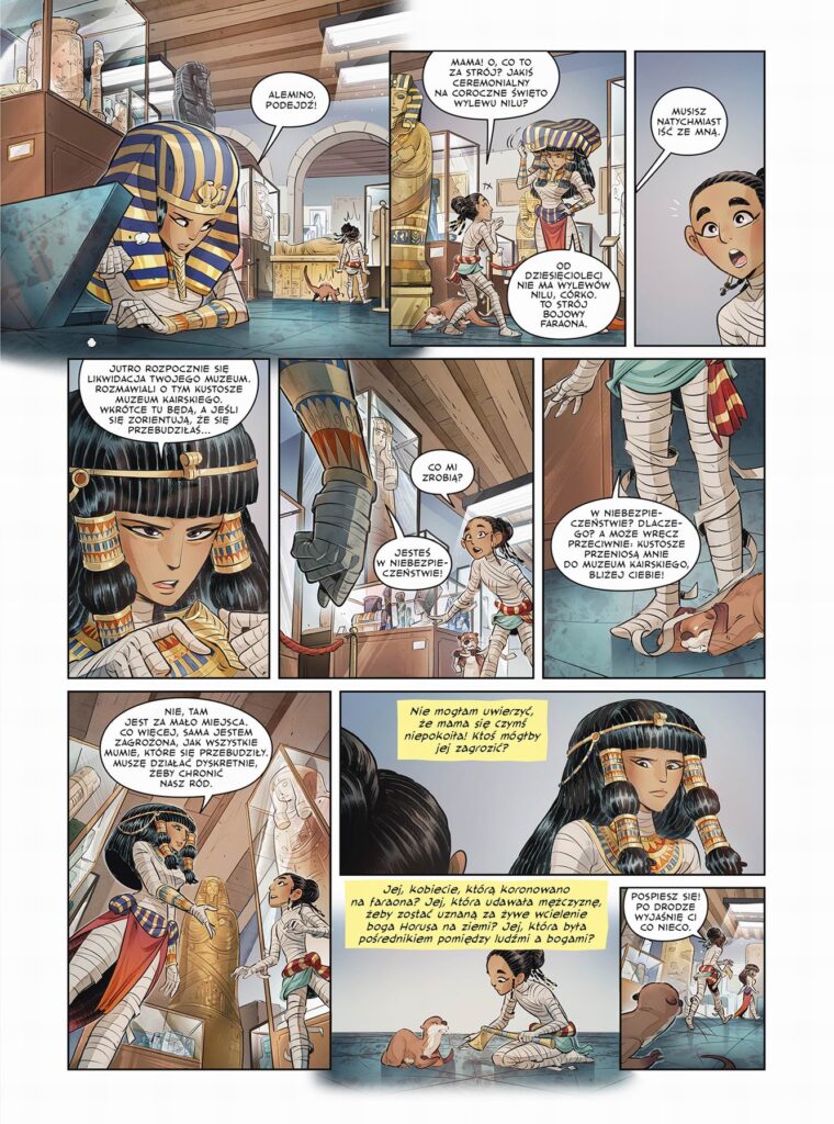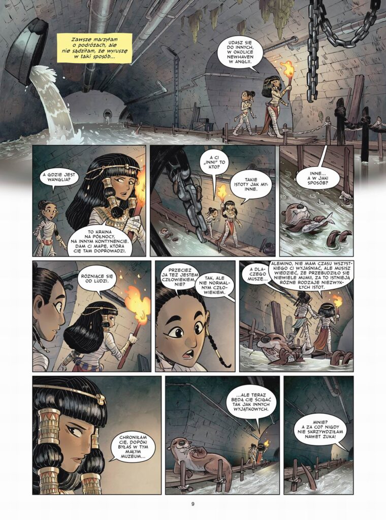 Muzea archeologiczne nie są miejscami, po których nocą krążą nastolatki, jednak Alemina nie jest zwykłą dziewczyną… To przebudzona mumia egipskiej księżniczki! Opuszcza sarkofag tylko po zmroku, dlatego jest ciekawa, jak wygląda współczesny świat. Nie przypuszcza, że już wkrótce będzie mogła się o tym przekonać, bo okoliczności zmuszą ją do wyruszenia w daleką wędrówkę. Rozpoczyna się opowieść o ucieczce Aleminy przed bezwzględnymi agentami tajnej organizacji, która poluje na takie jak ona niezwykłe istoty!