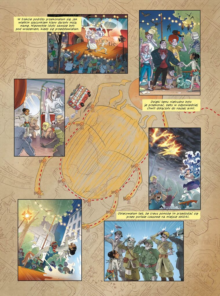 Drugi tom opowieści o przygodach mumii starożytnej księżniczki we współczesnym świecie. Alemina wyrusza z Wyjątkowymi na poszukiwanie innych klanów niezwykłych istot, aby zebrać je w armię zdolną pokonać organizację bezwzględnych Molossów. Księżniczka będzie musiała się nauczyć posługiwania magicznymi przedmiotami podarowanymi jej przez matkę, bo bez nadnaturalnego wsparcia nie zdoła przeciwstawić się tajemniczemu przywódcy Molossów. Aleminę czeka mnóstwo wyzwań, na szczęście może liczyć na towarzyszy dysponujących przedziwnymi zdolnościami!