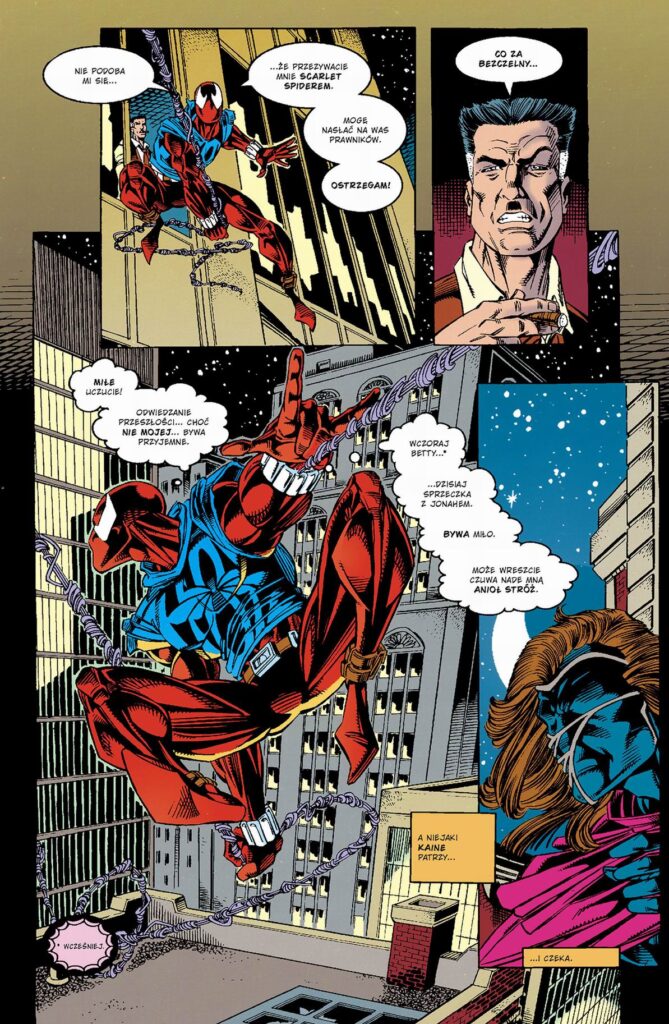 Czy przyjazne sąsiedztwo pomieści dwóch miotaczy sieci? Peter Parker ma poważny problem – został otruty, a jego los spoczywa w mackach Doktora Octopusa. Otto może go uratować, ale sam zapłaci za to wysoką cenę. Jakby tego było mało, ciocia May walczy o życie, Mary Jane ma wstrząsającą wiadomość, a Ben Reilly znów wkracza do akcji. Musi mieć jednak oczy dookoła głowy, bo pobliżu czai się już tajemniczy Kaine, a Jackal szykuje swój wielki powrót…