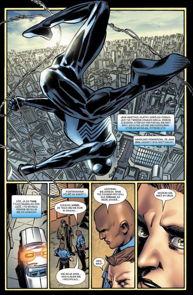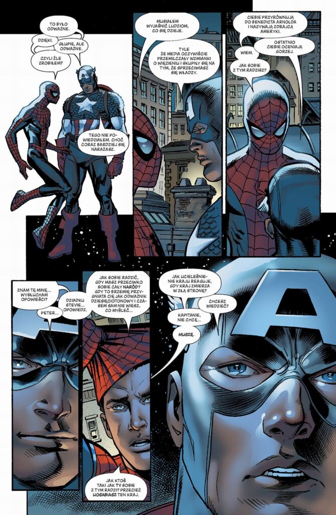 Czego w tym tomie nie ma? Spider-Man w nowym kostiumie. Spider-Man na powrót w czarnym kostiumie. I wreszcie: Spider-Man zdemaskowany! W dodatku przyjdzie mu się zmierzyć nie tylko z wrogami, ale też z sojusznikami: Kapitanem Ameryką i Iron Manem. Co gorsza ciocia May zostaje postrzelona przez jednego z popleczników Kingpina – jak daleko posunie się Peter, żeby ją uratować? W wyniku tych wszystkich zawirowań jego małżeństwo z Mary Jane wpada w poważny kryzys. Czy jest szansa, żeby ocalić ten związek? Fabularnie historie z tego tomu przelatają się z opowieściami z drugiego tomu „Marvel Knights Spider-Man”, dlatego warto oba te tomy czytać razem.