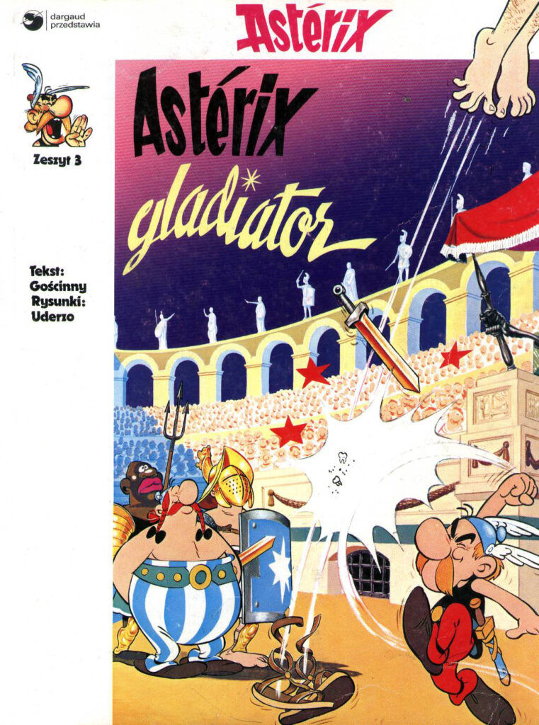 Juliusz Cezar otrzymuje od jednego z dowódców niezwykły podarunek – Kakofoniksa – słynnego galijskiego barda. Nieświadomy sytuacji bohater jest przekonany, że czekają go występy. Jednak Cezar nie okazuje zainteresowania muzycznym talentem Kakofoniksa i po stwierdzeniu, że ten nie nadaje się na gladiatora, postanawia rzucić go na pożarcie lwom w czasie igrzysk. Na ratunek spieszą Asteriks i Obeliks i, by dostać się do Koloseum, w którym ma być stracony ich towarzysz, postanawiają zostać gladiatorami.