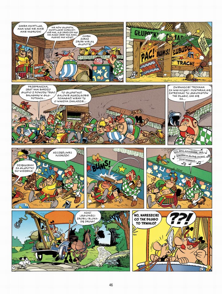 Asteriks zakłada się z Rzymianami! Dzielny Gal postanawia udowodnić, że pomimo skonstruowanej przez wrogów przeszkody uda mu się zwiedzić całą Galię i na dowód dokonania tego wyczynu, z każdego regionu przywiezie jakiś specjał. Wyrusza na wyprawę wraz ze swoim nieodłącznym kompanem Obeliksem, a ich plan próbują pokrzyżować rzymskie patrole śledzące każdy krok niezłomnych wojowników. Historia galijskiej osady, która dzielnie stawia opór rzymskim najeźdźcom, to obowiązkowa pozycja na półce każdego fana komiksów. Nieśmiertelny francuski dowcip serii stworzonej przez Renégo Goscinny’ego i Alberta Uderzo od wielu lat przyciąga kolejne pokolenia czytelników, a sprytny Asteriks, naiwny Obeliks i ich towarzysze znaleźli się w gronie ulubionych bohaterów masowej wyobraźni.