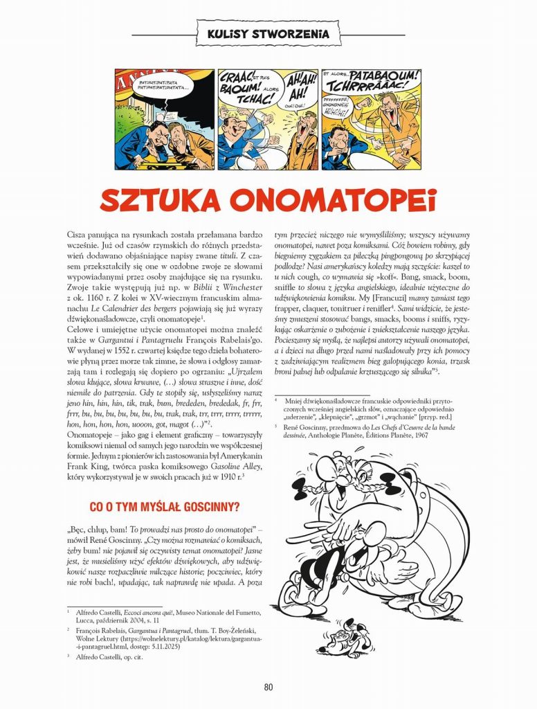 Historia galijskiej osady to obowiązkowa pozycja na półce każdego fana komiksów. Nieśmiertelny francuski dowcip serii stworzonej w 1959 roku na łamach magazynu „Pilote” przez scenarzystę Renégo Goscinny’ego (1926–1977) i rysownika Alberta Uderzo (1927–2020) od wielu lat przyciąga kolejne pokolenia czytelników, a sprytny Asteriks, naiwny Obeliks i ich towarzysze znaleźli się w gronie ulubionych bohaterów masowej wyobraźni. Cykl stał się jednym z fenomenów kultury popularnej XX wieku.