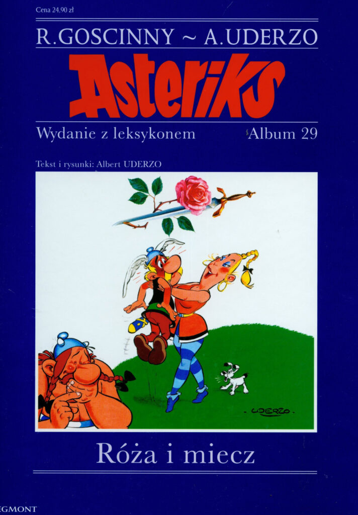 Album „Róża i miecz” rozszedł się w wielomilionowym nakładzie w kilkunastu krajach Europy. Po raz pierwszy w doskonale nam znanej galijskiej wiosce osią wydarzeń stają się poczynania kobiet. Galijki wkładają spodnie, okazują pewność siebie i uczą się emancypacji. Agitatorką zmian jest Maestria, nauczycielka pochodząca z Lutecji (dzisiejszego Paryża). Jej przybycie do osady Galów wprowadza niemałe zamieszanie. Kakofoniks traci pracę, Obeliks trafia do szkoły, a Asteriks dopuszcza się rękoczynów… W końcu wszyscy mężczyźni, nie mogąc znieść rosnących wpływów Maestrii, opuszczają wioskę. Rzymianie na to właśnie czekali! Zamierzają wreszcie pokonać nieugiętych Galów.