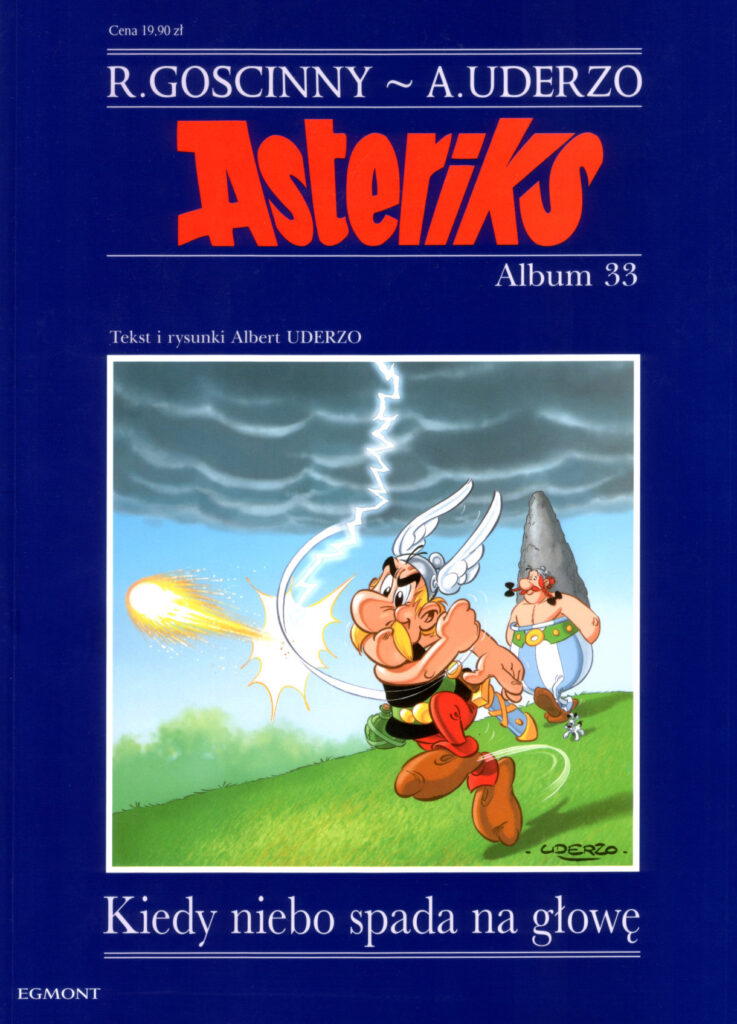 Asteriks i inni Galowie nieraz mówili, że boją się tylko tego, aby niebo nie spadło im na głowy. Tymczasem to, co dzieje się na początku 33. tomu przygód sympatycznych Galów, tak właśnie można określić. Najpierw w czasie polowania Asteriks i Obeliks znajdują w lesie zupełnie sztywnego, a więc nieprzydatnego pod względem kulinarnym, dzika. Kiedy wracają do wioski, stwierdzają, że i ludzie jakby skamienieli. Tylko druid Panoramiks, który nie uległ dziwnemu zjawisku, może coś na to poradzić… Ale czy zdąży?… Nad wioską Galów pojawia się ogromna kula, a z niej wyskakuje dziwny fioletowy przybysz…