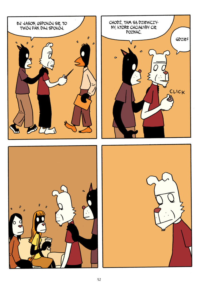 Wyobraź sobie nigdy nienakręcone filmy Alfreda Hitchcocka, Bustera Keatona czy odkryte powieści Aleksandra Dumasa, zaadaptowane i sfilmowane przez współczesnego minimalistę, takiego jak Jim Jarmusch czy Wes Anderson, a będziesz mieć pojęcie o wyjątkowym smaku komiksów Jasona. Dodaj do tego prostotę kreski i zwierzęce postacie. Jason, jeden z najbardziej ekscytujących współczesnych twórców komiksu nie boi się mieszać gatunków i wykorzystywać elementów fantastycznych. Dziwne, nieszablonowe opowieści ze zgryźliwymi dialogami i ponurym humorem.