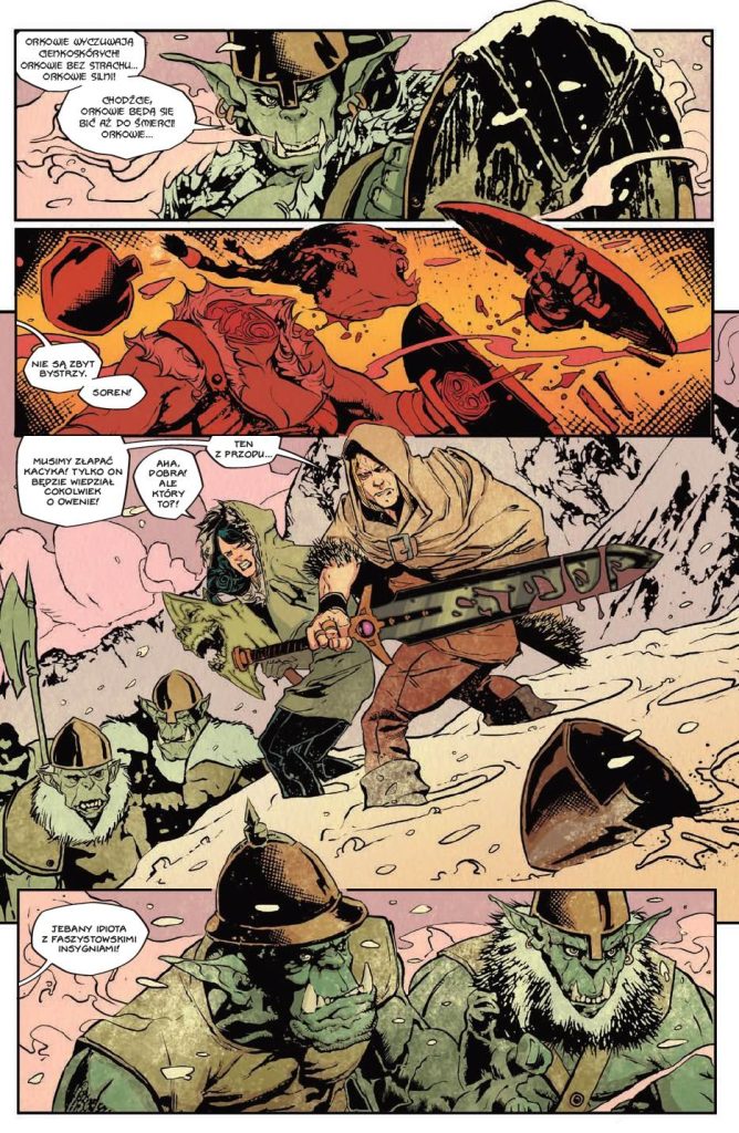 W warstwie rysunku jest świetnie. Nie wiem, czy nie lepiej nawet, niż we wspomnianej serii MacLeana, bo tam było prościej, toporniej, bardziej schematycznie, cartoonowo. Tutaj odpowiedzialny za kreskę Nathan Gooden stawia na realizm, na dopracowanie detali. Co – trzeba przyznać, robi wrażenie, zwłaszcza w rozlicznych scenach walk, rąbania, ciosania itd. To mocno pulpowa estetyka, która świetnie wpisuje się w klimat całej opowieści i jest naprawdę dobrym uzupełnieniem (zamierzenie) niewyszukanego scenariusza.