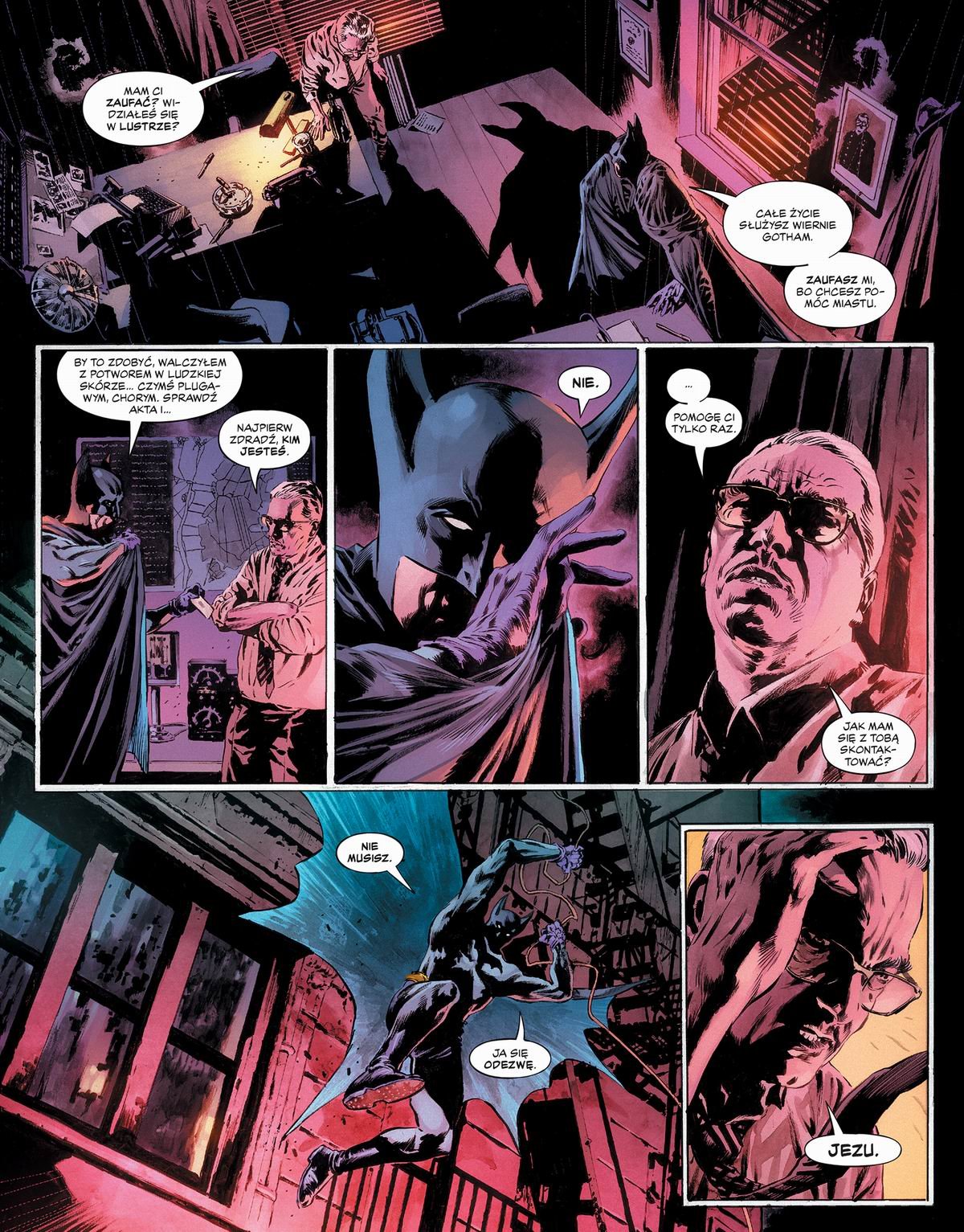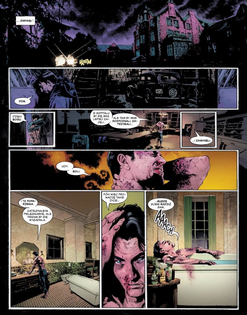 Podobny problem dotyczy samego Batmana. Pomysł zarażenia go wirusem likantropii jest świeży i daje potencjał do interesujących rozważań na temat kontroli, tożsamości i granicy między człowiekiem a potworem. Niestety narracja nie zatrzymuje się na tyle długo, by naprawdę wejść w psychikę Bruce’a Wayne’a w tej ekstremalnej sytuacji. Horror dominuje nad introspekcją, a historia, choć momentami sugestywna i brutalna, ostatecznie prowadzi do dość przewidywalnego rozwiązania.