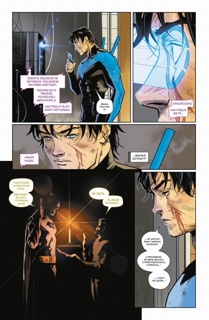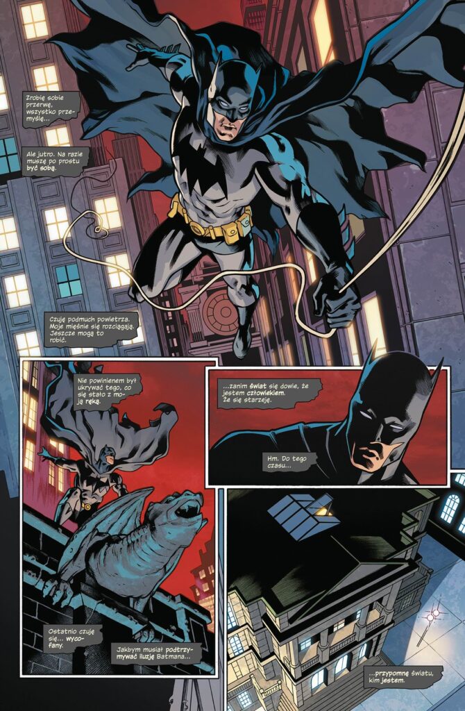 To co mi się podobało to kontynuacja wątku z sukcesywnym rozpadem osobowości Bruce’a Wayna, co jest pochodną konfrontacji z jego cybernetycznym odpowiednikiem z pierwszego tomu - to wpływa również na całą nietoperzową rodzinę i jest bardzo umiejętnie rozgrywane w scenariuszu. Powraca też motyw starzenia się bohatera i związanych z tym faktem problemów - obawiam się jednak, że z czasem nastąpi jakiś kolejny reset w uniwersum i synonimem starego Gacka nadal będzie wredny sukinsyn z “Powrotu Mrocznego Rycerza”.