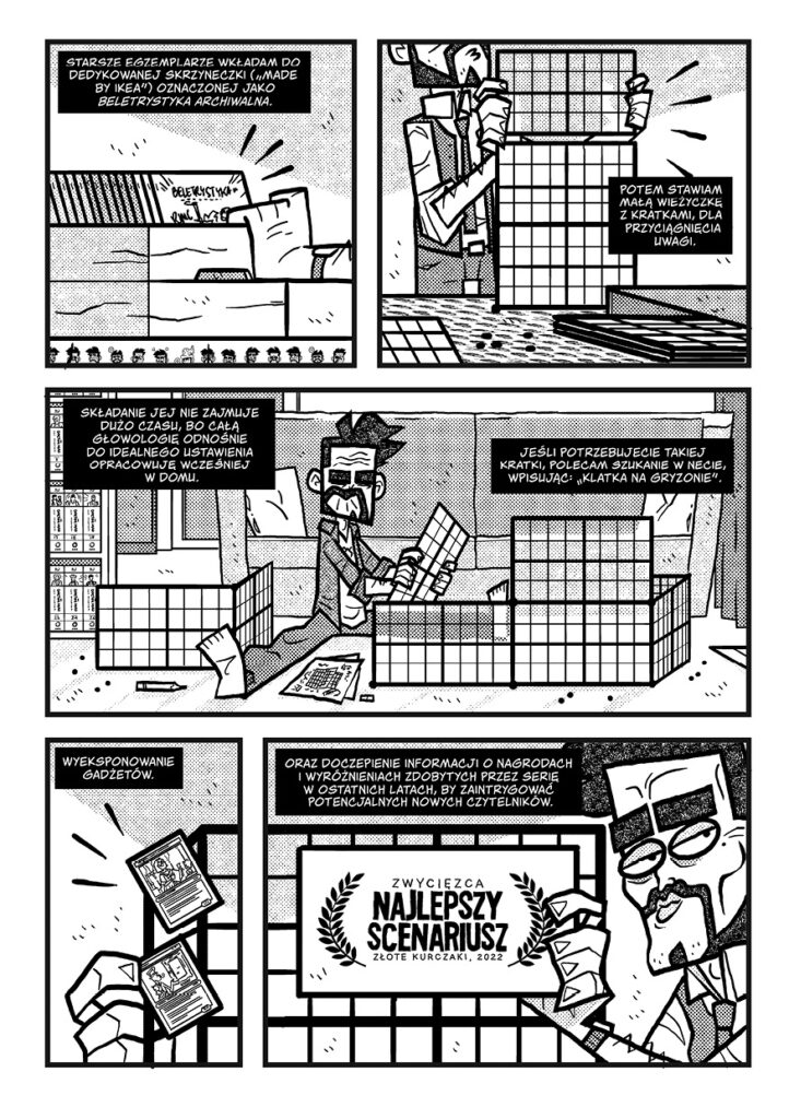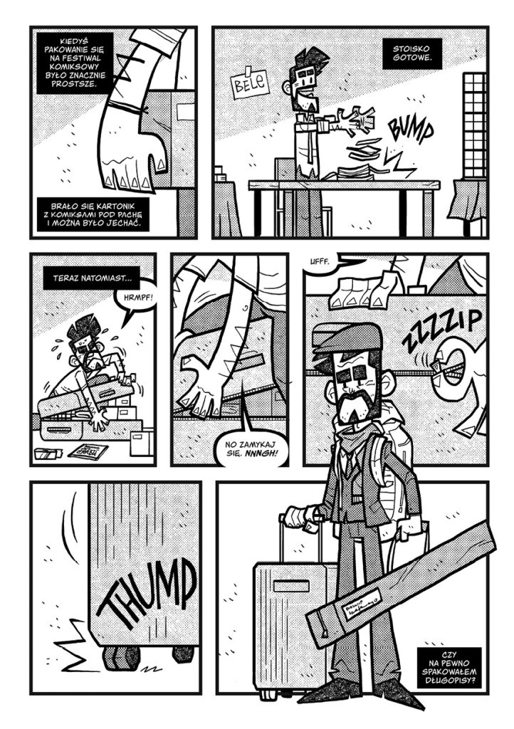 Robert przy komiksach robił praktycznie wszystko. Pisał je (Rycerz Janek i instrukcja prawidłowego składania ofiar zapomnianym bóstwom), rysował (Ostatni Pisarz), publikował w internecie (The Movie), naczelnie redaktorzył (Profanum) oraz przygotowywał do druku (Warchlaki i pewnie połowa komiksów, które masz na półce). Od kilku lat tworzy również autobiograficzny komiks o życiu twórcy autobiograficznego komiksu. To jest ten komiks.