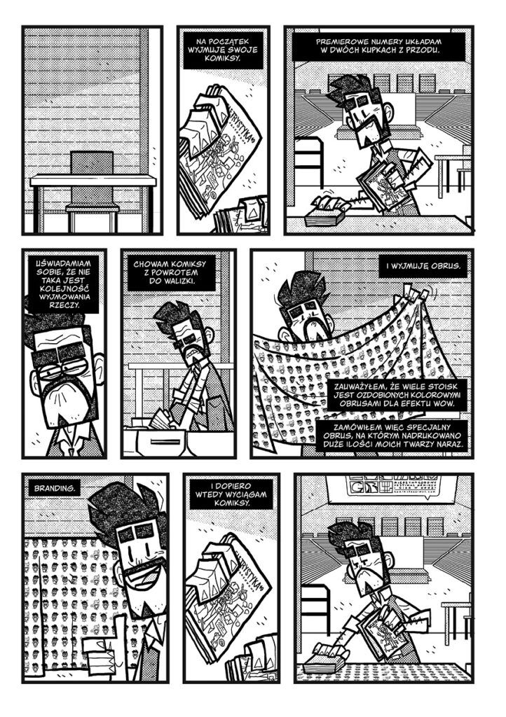 „Potwierdzam otrzymanie opłaty za stoisko o wymiarach blatu 90x80cm”. – Aleska Słowik (Krakowski Festiwal Komiksu)