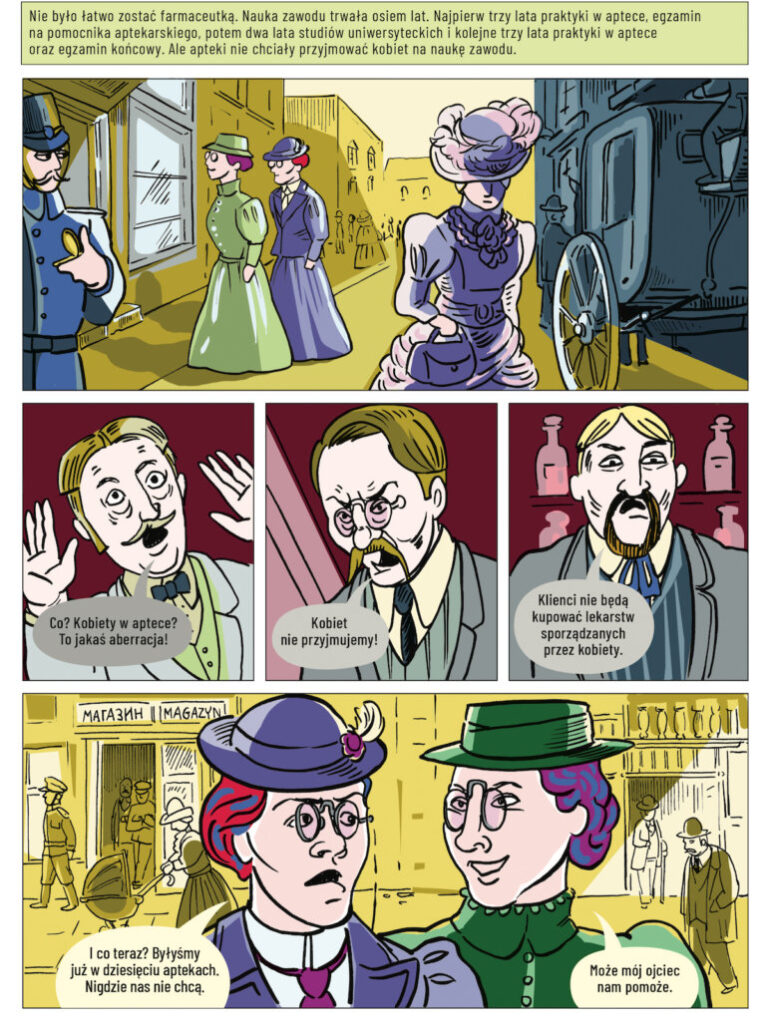 A zatem kim były i o co walczyły polskie emancypantki? Zapraszamy do lektury naszego historycznego komiksu. Przewodniczkami po świecie emancypantek są: Kazimiera Bujwidowa, Paulina Kuczalska-Reinschmit, Maria Dulębianka, Aleksandra Piłsudska i Justyna Budzińska-Tylicka. Każda z nich symbolizuje inny etap walki o równouprawnienie i prawa polityczne kobiet.