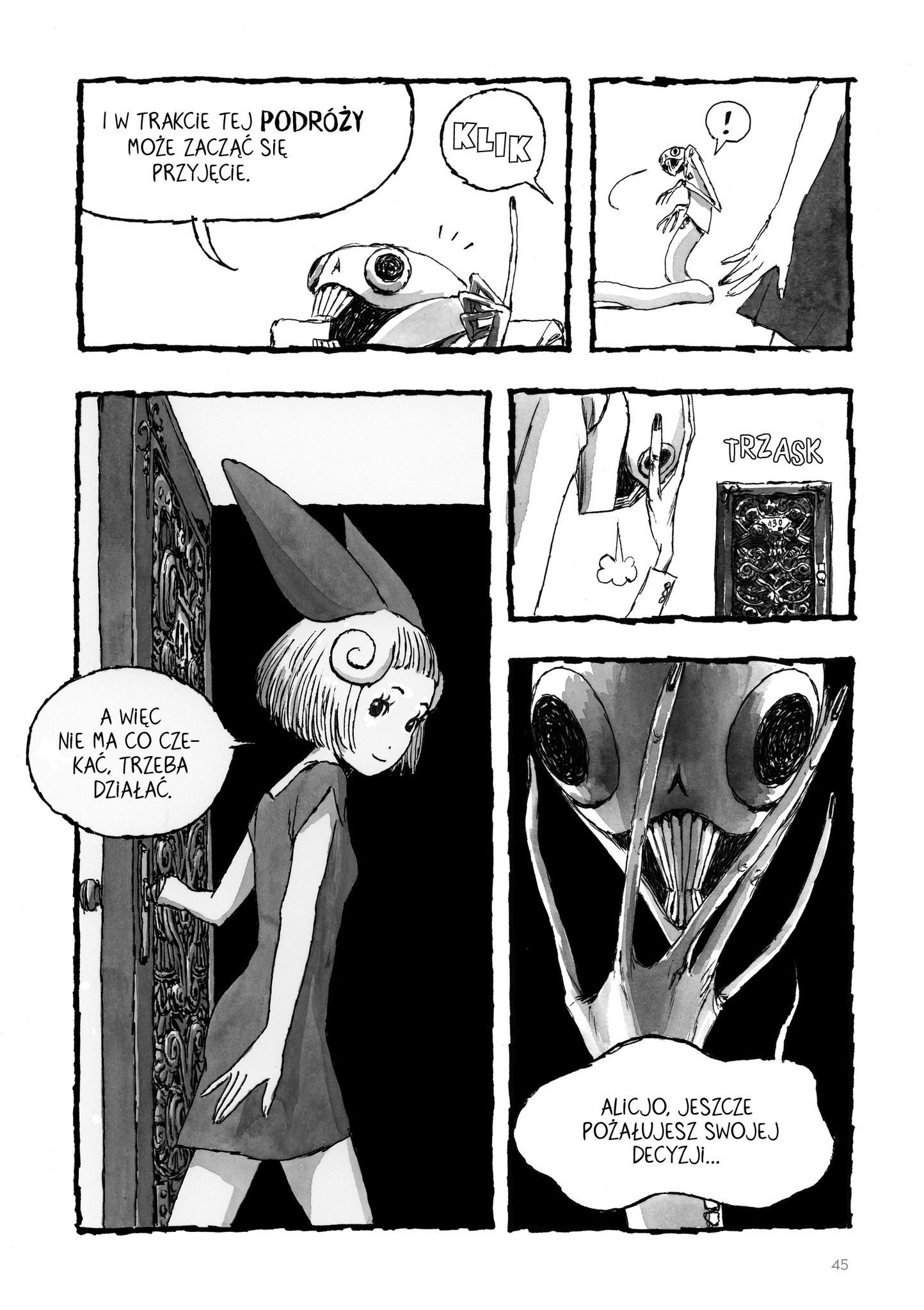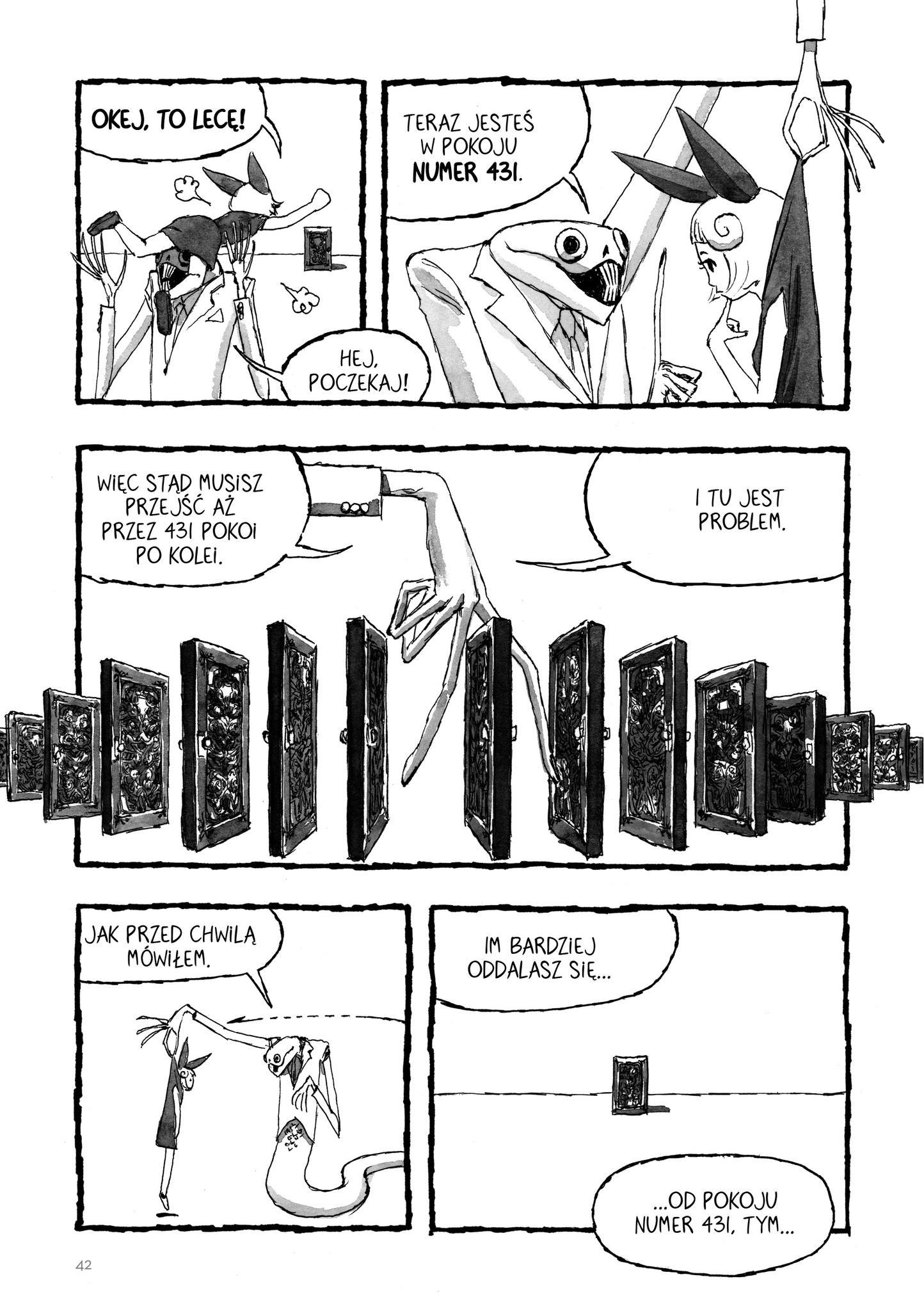 Alicja budzi się pewnego dnia w wielkim, pustym pomieszczeniu, z którego jedyne wyjście prowadzi przez tajemnicze drzwi. Po ich przekroczeniu pojawia się dziwaczny gospodarz-wąż, deklarujący że najlepsze co spotkać może dziewczynę to pozostanie tam gdzie jest, bo jeśli będzie chciała wyjść to po pierwsze musi przejść kolejno 430 pokoi, a po drugie…nigdy już nie będzie taka sama.