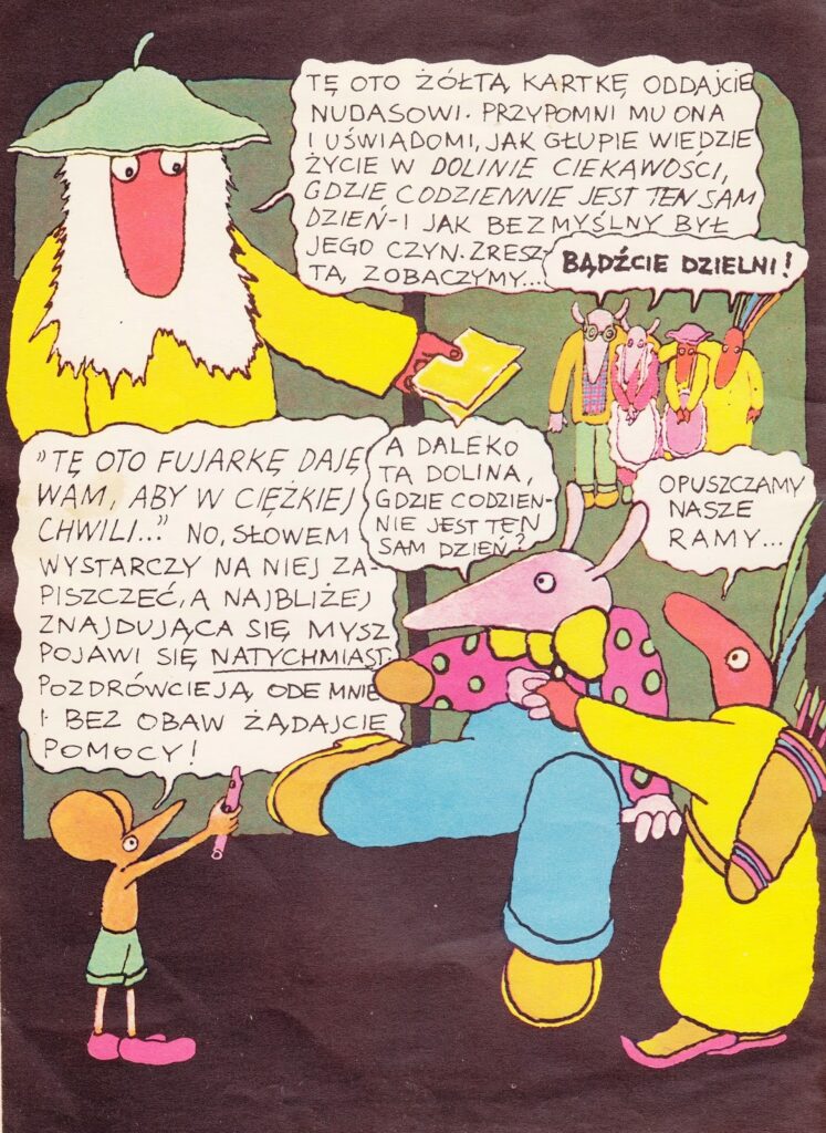 Ta książka jest dla Małych i Dużych. Opowieść o niebezpiecznej wyprawie dwóch mieszkańców Doliny Radości, Mu-Cho i Flanka, do Nudasa w Dolinie Ciekawości.