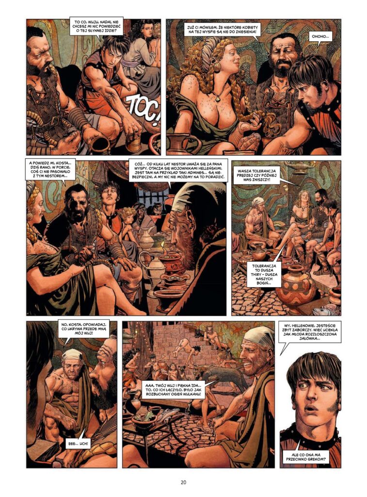 Wyspa Thira, znana dziś jako Santoryn, była domem wspaniałej cywilizacji minojskiej ze społeczeństwem matriarchalnym, w którym kobiety, symbole świętości i życia, kierowały biegiem wydarzeń. Cywilizacja ta stanęła w obliczu jednego z najbardziej niszczycielskich kataklizmów