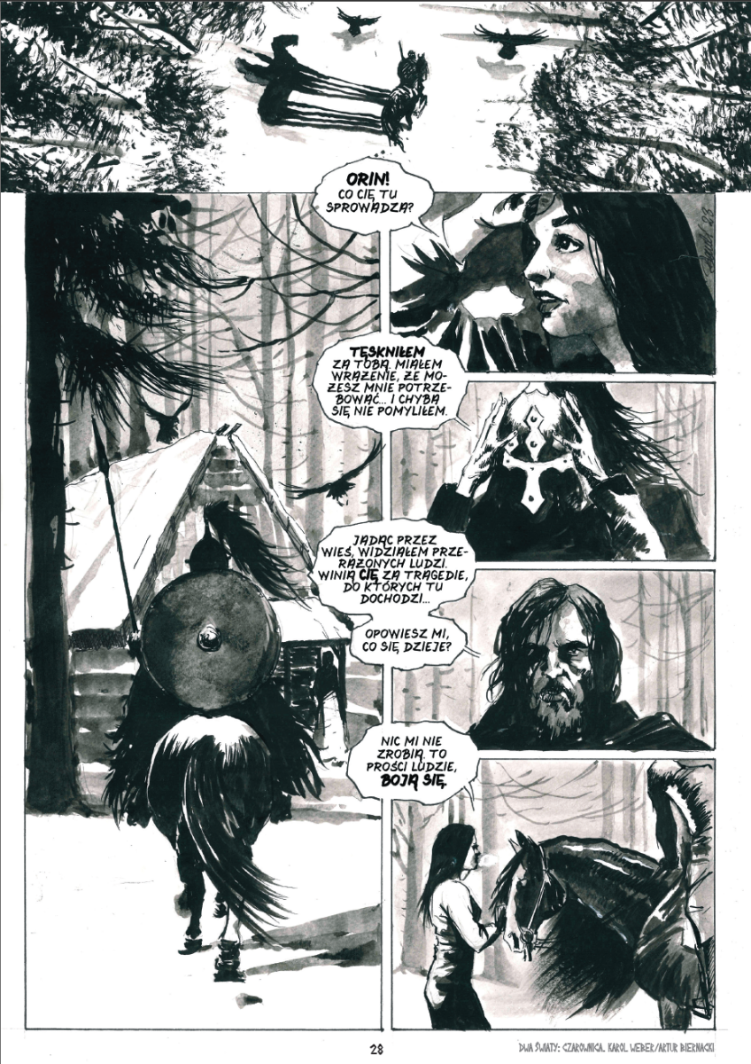 Czarnowłosa wiedźma, swawolące po lasach krwiożercze rusałki, wilkołaki, dawni bogowie i rytuały przejścia między światem żywych i umarłych, wreszcie grasujący we wsi morderca kobiet – wszystko to można spotkać w intrygującym komiksie Dwa światy, opowiadającym o zbrodni, zdradzie i zemście. To także historia o tym, że bogowie nie zawsze są wszechmocni, mimo że za takich uważają ich ludzie, i że oni również popełniają błędy…
