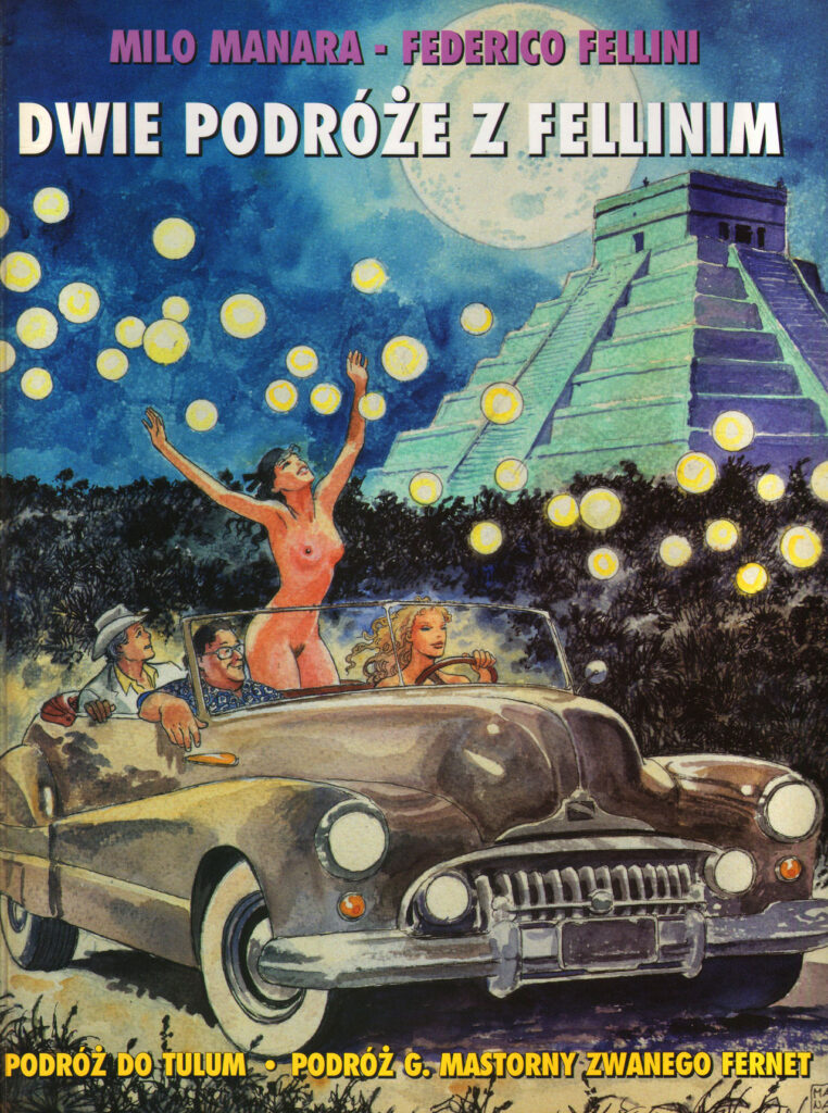 Manara i Fellini! Takie połączenie na pewno intryguje i prowokuje do różnych pytań. Niemniej efekt współpracy pomiędzy znanym reżyserem filmowym i fantastycznym, włoskim rysownikiem jest piorunujący. W tych komiksach jest wszystko: przenikanie się świata snu z rzeczywistością, erotyzm i iluzja. Dwa komiksy „Podróż do Tulum” i „Podróż Mastorny” powstały w latach 1990-93 na podstawie scenariusza filmowego „Mastorna”, który Fellini usiłował zrealizować jeszcze w latach 60-tych. Jednak splot różnych, niekiedy dziwnych okoliczności, które same w sobie mogłyby stać się podstawą ciekawej opowieści spowodował, że film nigdy nie powstał. Dla samego reżysera było to jednak bardzo ważne doświadczenie, które później stało się inspiracją dla takich jego filmów jak „Satyrykon” czy „Casanova”. Pomysł w każdym bądź razie został odłożony na półkę, niemniej prześladował Felliniego do końca życia jako jeden z najważniejszych, niezrealizowanych projektów. Film „widmo” jak sam go nazywał. W wywiadzie udzielonym Giovanniemu Grazziniemu Fellini mówił: „gdybym (…) jednak zaczął mówić o Mastornie i opowiedział raz jeszcze, że to jest podróż wyimaginowana i wyśniona, podróż w głąb pamięci, w nieświadome, po labiryncie, który ma nieskończenie wiele wyjść i jedno tylko wejście i problem jest jak tam wejść, a nie jak wyjść; i gdybym tak bezwstydnie snuł definicje i przypowieści, nie myślę żebym zdołał oddać sens filmu, o którym ja sam przede wszystkim nie wiem, jaki jest. Bo jest to podejrzenie, cień filmu, może też film, którego nie umiem zrobić.” Dopiero późniejsza współpraca z Milo Manarą spowodowała, że scenariusz ujrzał światło dzienne pod postacią dwóch niezwykłych komiksów. Manara ziliustrował w całości pierwszy z nich tzn. „Podróż do Tulum” . Prace nad „Podróżą Mastorny” przerwała śmierć Felliniego w 1993 r. Manara, któremu udało się do tej pory zilustrować prawie połowę scenariusza, odmówił jednak kontynuowania pracy i komiks został wydany ostatecznie z uzupełnieniami w postaci storyboardów Felliniego, licznymi szkicami, i artykułami poświęconymi tej współpracy. Polska wersja będzie wydaniem zbiorczym.