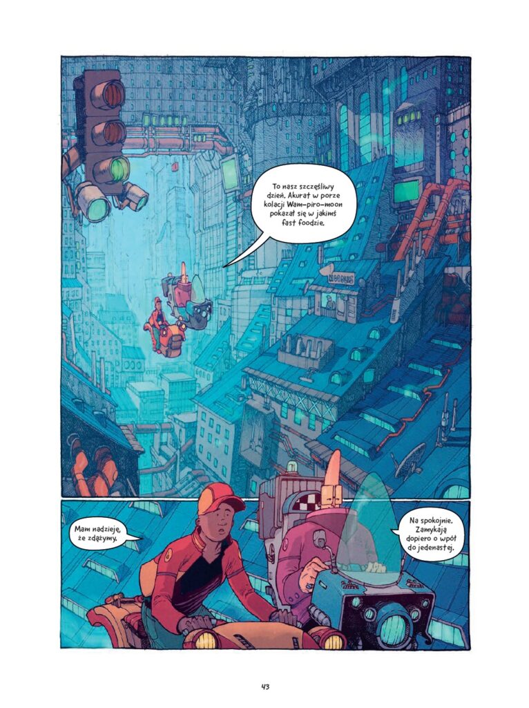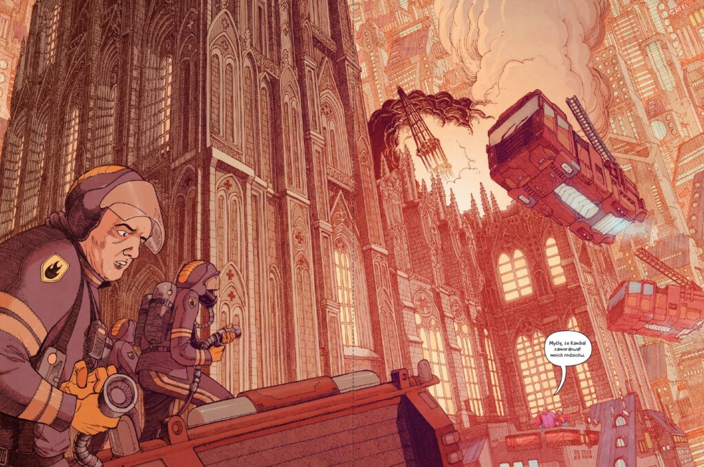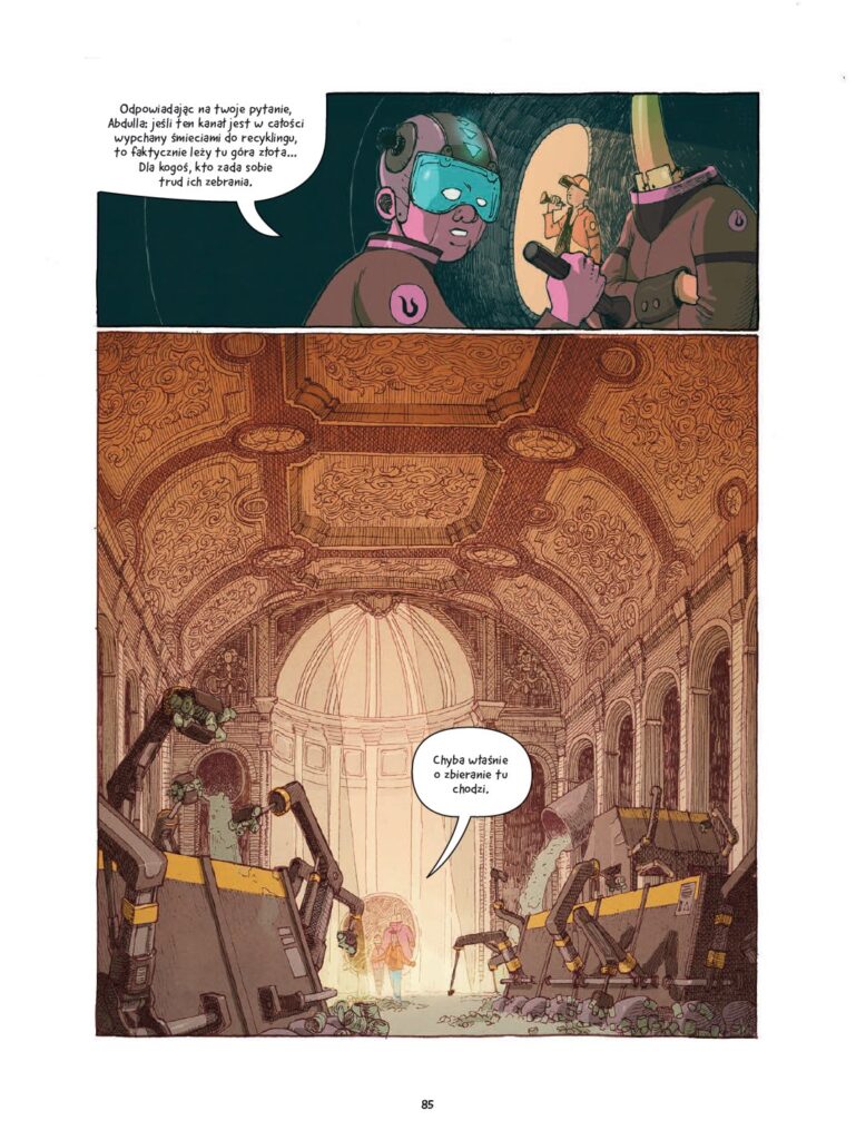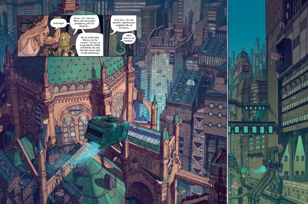 Historia opowiadana przez Miela Vandepitte jest zgrabnie przerysowana, irracjonalna i na swój, krwawy, i pokrętny sposób zgryźliwie ironiczna. Nie ma tutaj przesadnych zaskoczeń, nie one są celem samym w sobie. Bardziej jednym z głównych graczy jest tu samo miasto, którego prezentacja zajmuje większą część komiksu, zarówno w scenariuszu, jak i (przede wszystkim) warstwie graficznej. Vandepitte opowiada o dość klasycznej – mimo absurdalnego sztafażu – próbie wyrwania się poza własne, wynikłe z pochodzenia ograniczenia, jakie determinują każdego. Nie omieszka też wypunktować grzechów każdej władzy, skupionej w rękach wąskiego grona najbogatszych, którzy resztę świata traktują niczym prywatny folwark. Niby proste, niby ograne, ale ten uniwersalizm opowieści okraszony zgryźliwym sarkazmem z odpowiednio zaimplementowaną dawką makabryczności całkiem udatnie działa na odbiorcę. I – co najważniejsze – nie przesłania tego, co w komiksie najważniejsze – warstwy rysunku.
