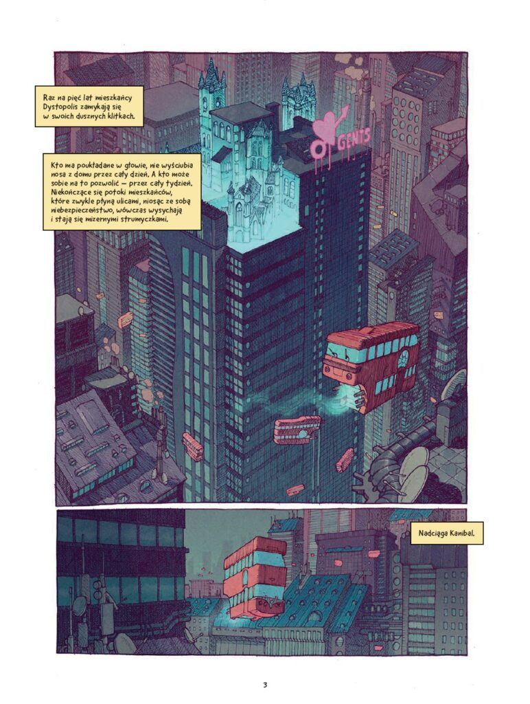 „Dystopolis” to w fabularnej warstwie prosta, ale mocna jazda bez trzymanki. Absurd goni absurd, a całość w warstwie przekazu opowiada mało skomplikowaną, ale chwytliwie podaną opowieść o (doczasowej) bezkarności władzy, ale też o walce z własnymi ograniczeniami i tym, co determinuje nasze pochodzenie.